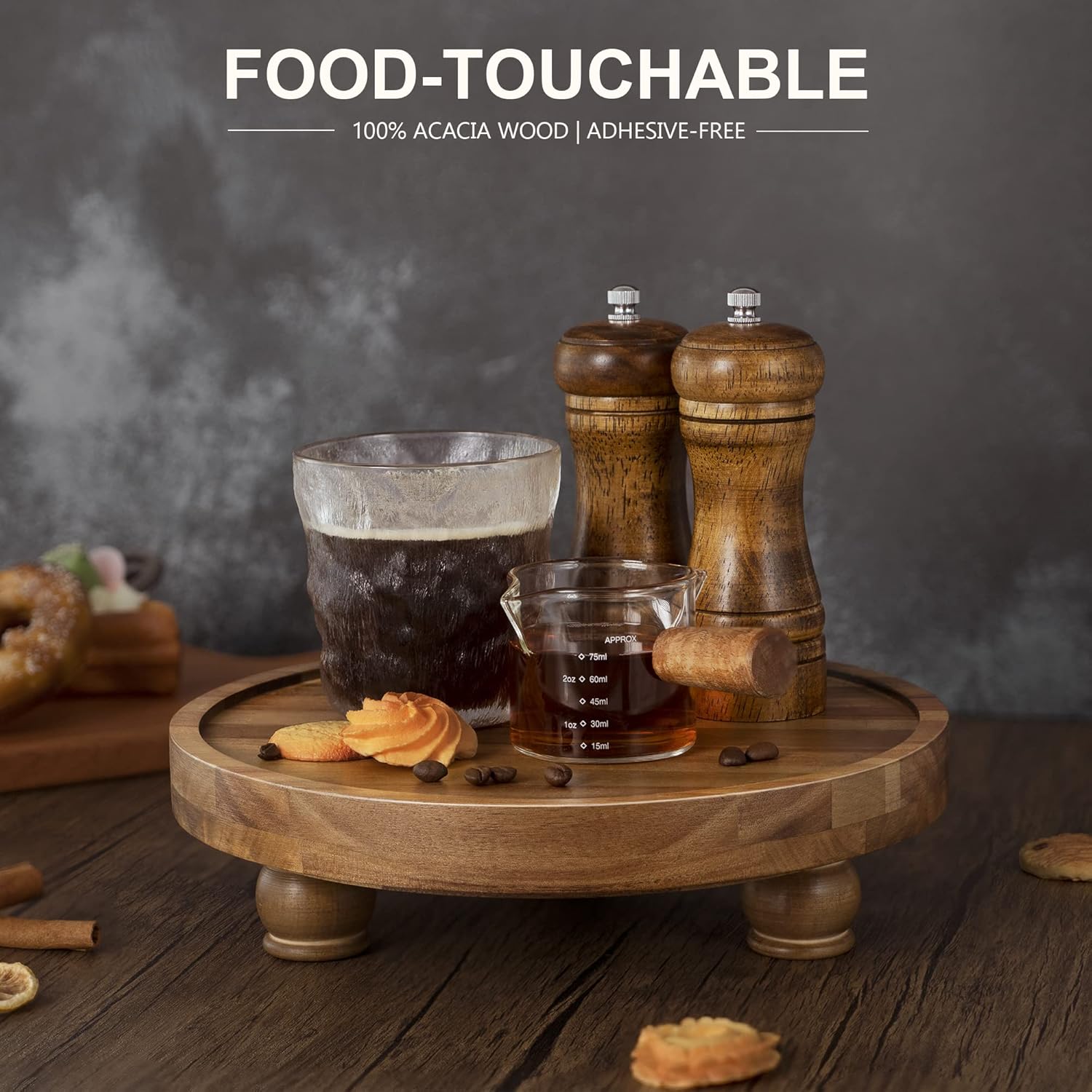 - [EXQUISITE ACACIA WOOD RISER] Crafted with precious acacia wood and featuring a lovely round design, our wooden display riser becomes the highlight of any home. What's more, the special process allows it to directly touch the dishes!