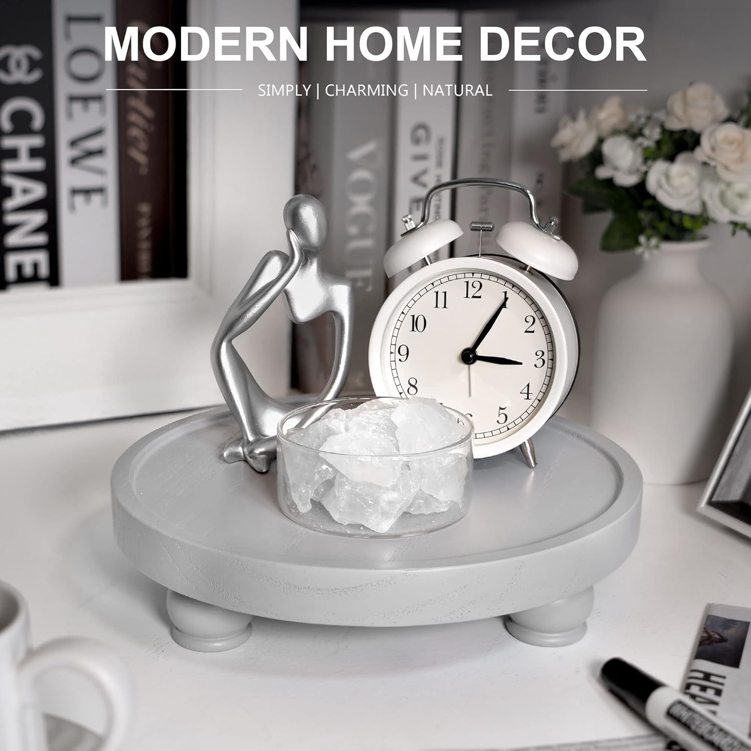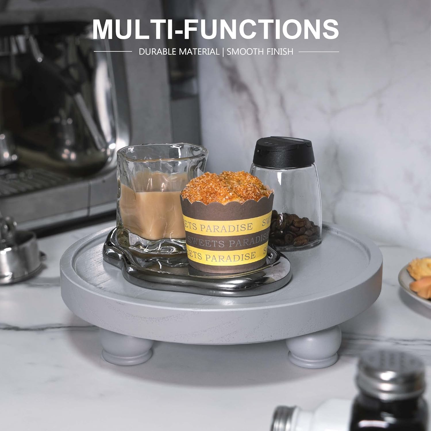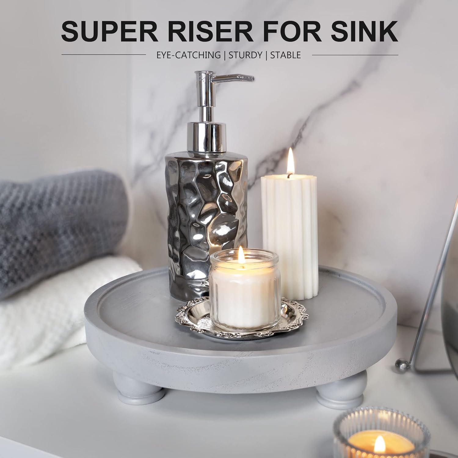 EOSAHR Modern Wooden Risers for Display: Farmhouse Pedestal Stand for Home, Kitchen and Bathroom Counter Decor - Stylish Round Waterproof Decorative Tray for Organize Soap, Sink, Jewelry (Gray)