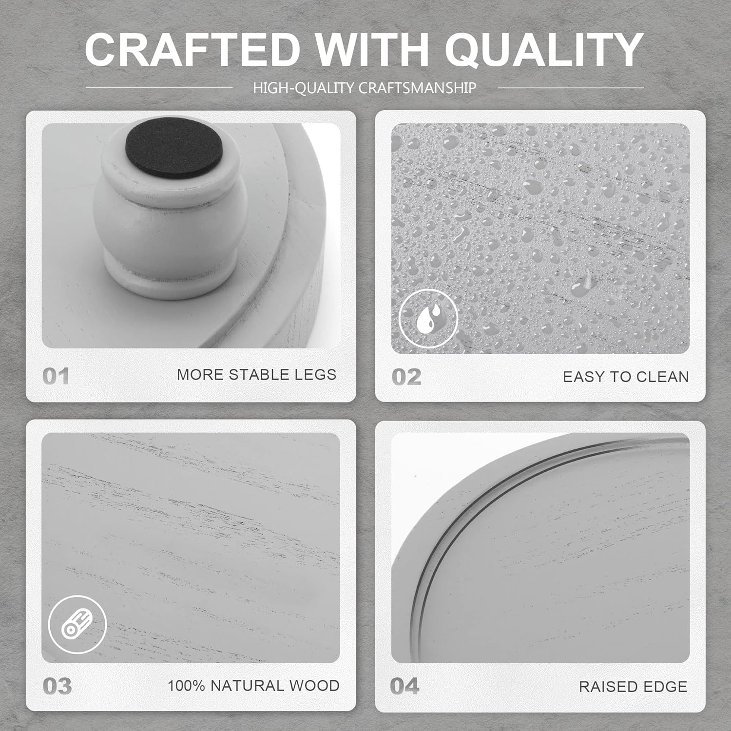 - [CHARMING DISPLAY RISER FOR HOME DECOR] The gray finish wooden pedestal stand features a lovely round design that adds modern charm to any home decor. Its larger size allows for displaying flowers, soap, vases, and other centerpiece items with ease.