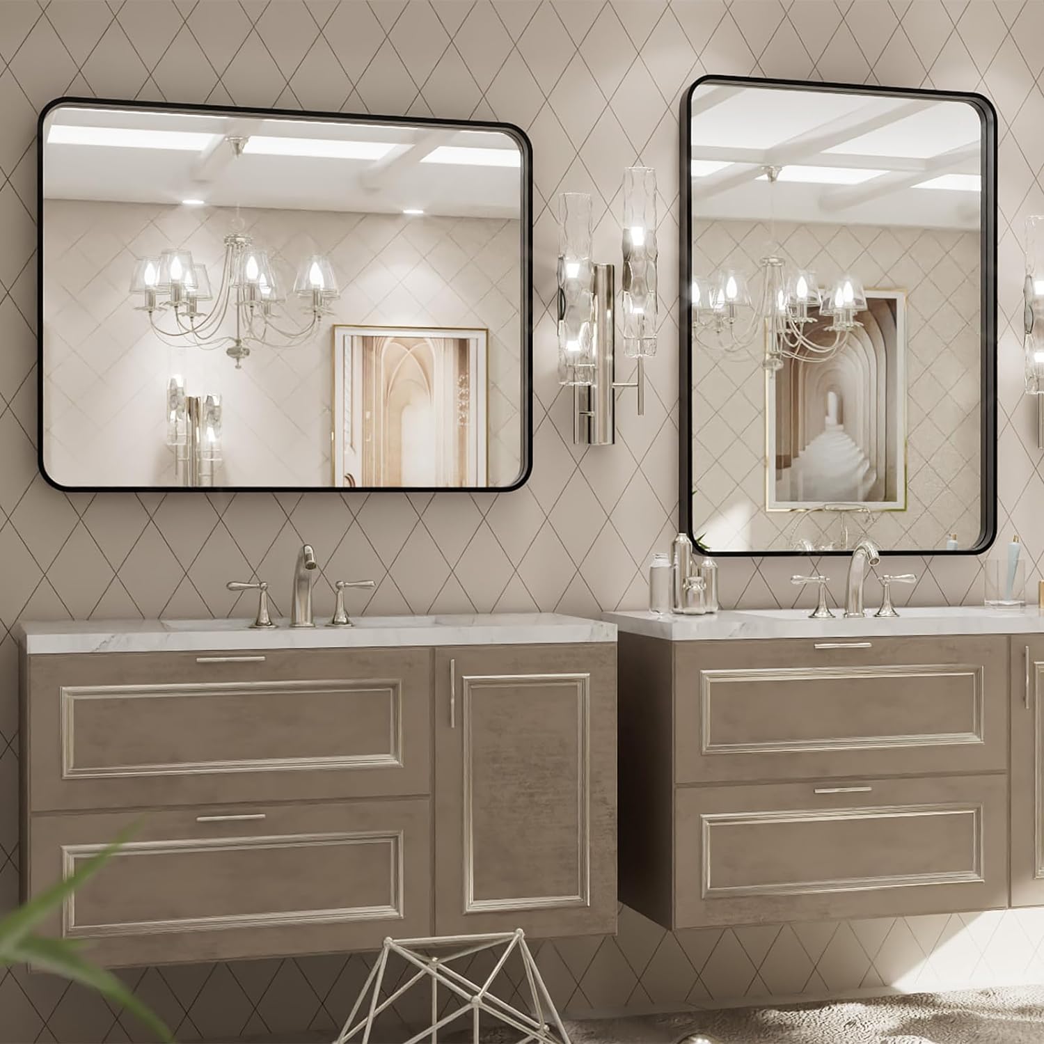 LOAAO 32x36 Inch Black Metal Framed Bathroom Mirror for Wall, Matte Black Bathroom Vanity Mirror Farmhouse, Large Rounded Rectangle Mirror, Anti-Rust, Tempered Glass, Hangs Horizontally or Vertically