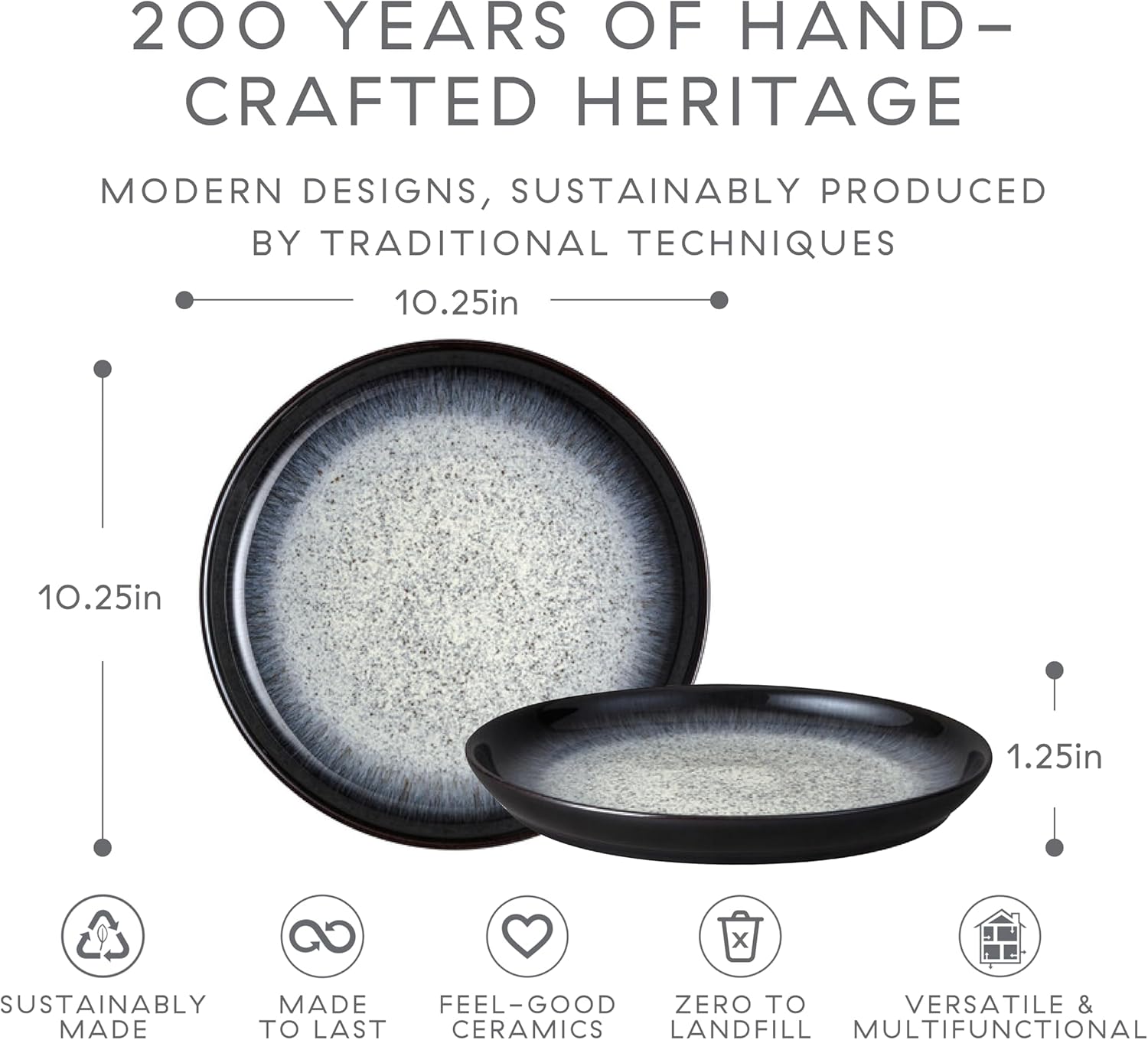 Denby - Halo Coupe Dinner Plates Set of 6-10.25 Inch Reactive Glaze, Dishwasher Microwave Oven Safe - Scratch Chip Resistant - Grey, Black Large Ceramic Stoneware Dinnerware Plates Set