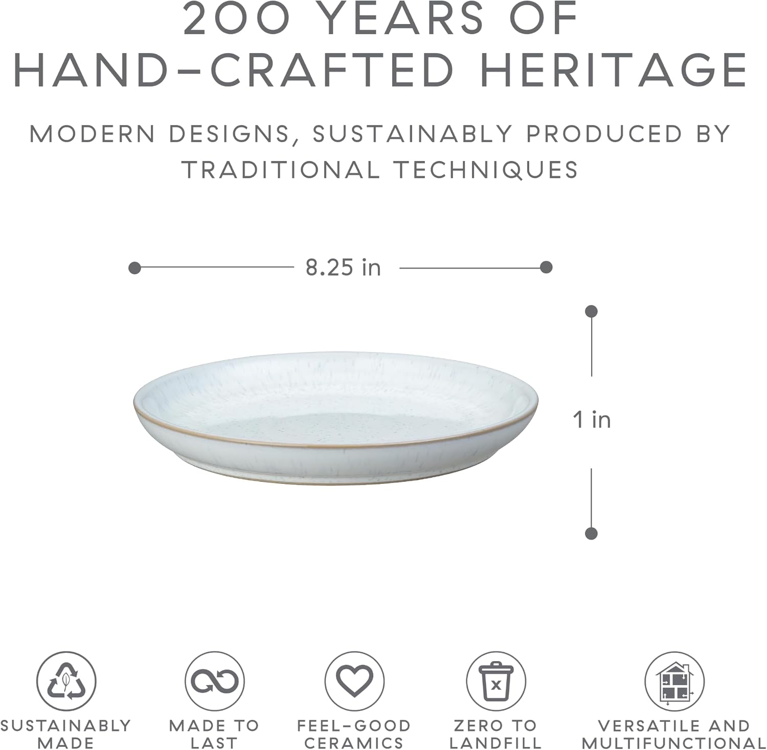 Denby - White Speckle Medium Plates Set of 6 - White Reactive Glaze Neutral Patterned - Dishwasher, Microwave Safe Crockery 8.25" - Ceramic Stoneware Tableware - Chip & Crack Resistant