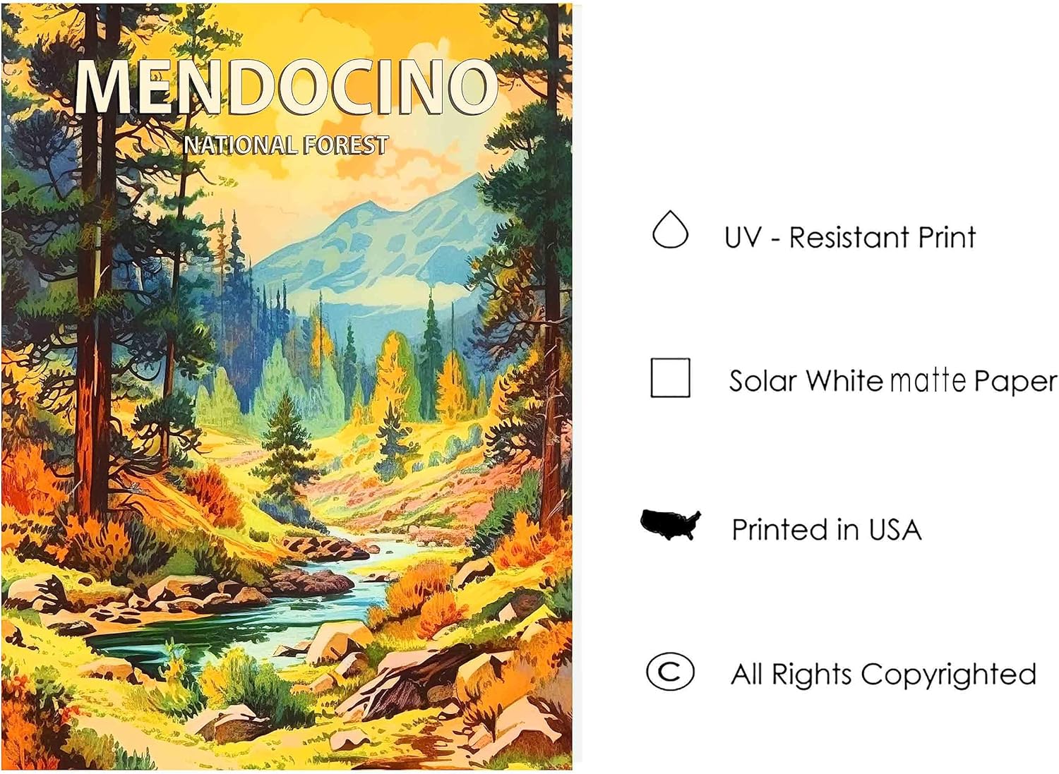 Mendocino National Forest Poster Art Print Retro Mountain Wall Art Poster Vintage Decor Nature Recreation Wilderness Wildlife Decoration, Outdoor Adventure Scenic Beauty Artwork. (Mendocino National