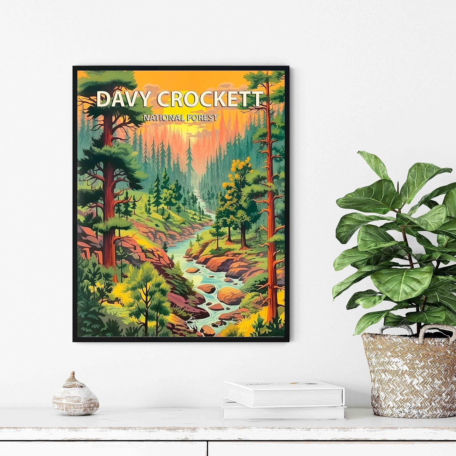 Davy Crockett National Forest Poster Art Print Retro Mountain Wall Art Poster Vintage Decor Nature Recreation Wilderness Wildlife Decoration, Outdoor Adventure Scenic Beauty Artwork. (Davy Crockett