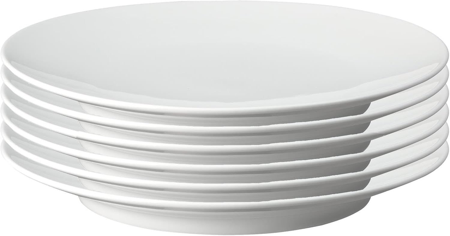 Denby - Classic White Porcelain Medium Plates Set of 6-9 Inch Glazed, Dishwasher Microwave Oven Safe - Scratch Chip Resistant Lunch, Appetizer, Dessert Plates - Dinnerware Plate Set