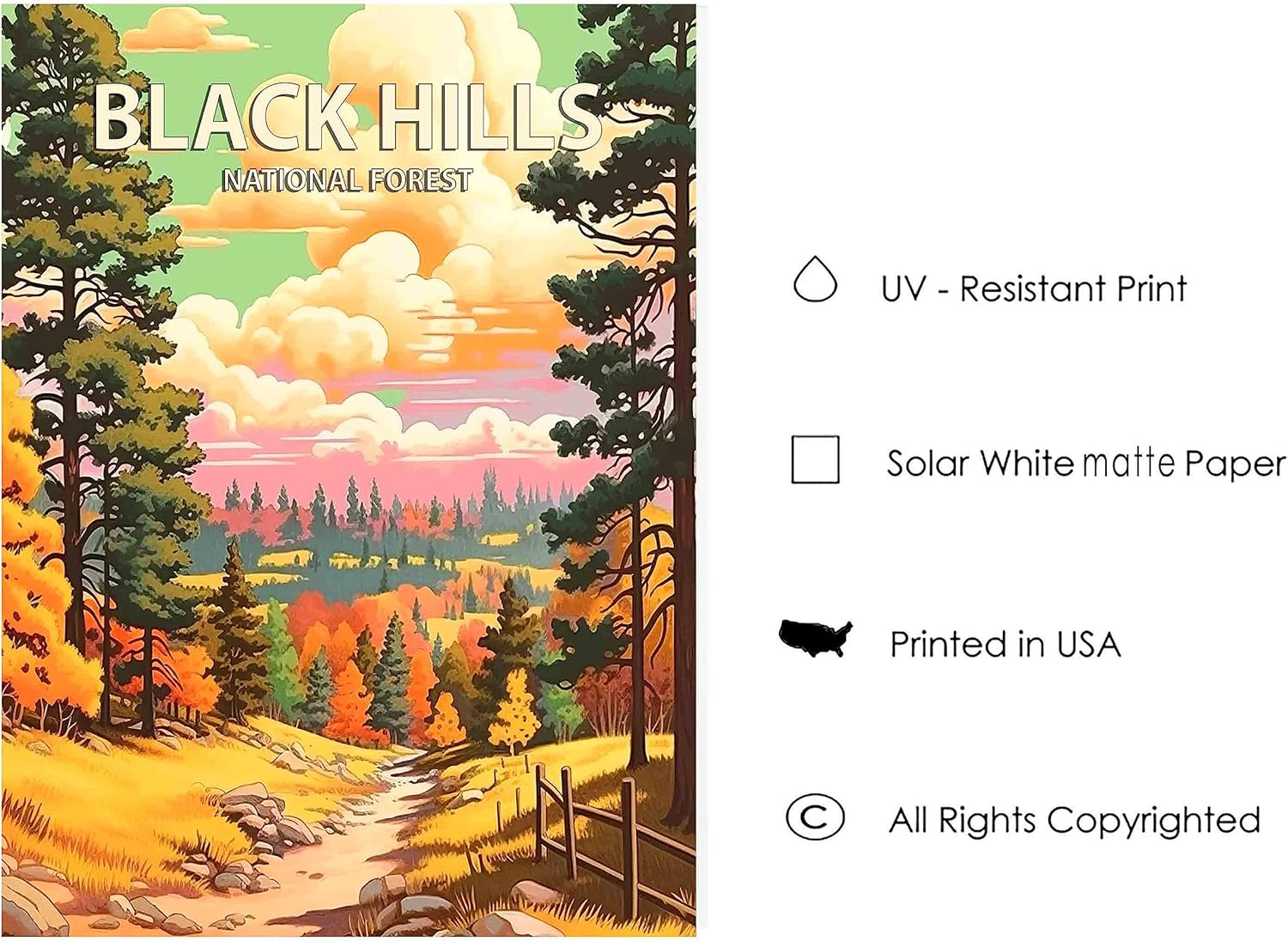 Black Hills National Forest Poster Art Print Retro Mountain Wall Art Poster Vintage Decor Nature Recreation Wilderness Wildlife Decoration, Outdoor Adventure Scenic Beauty Artwork. (Black Hills