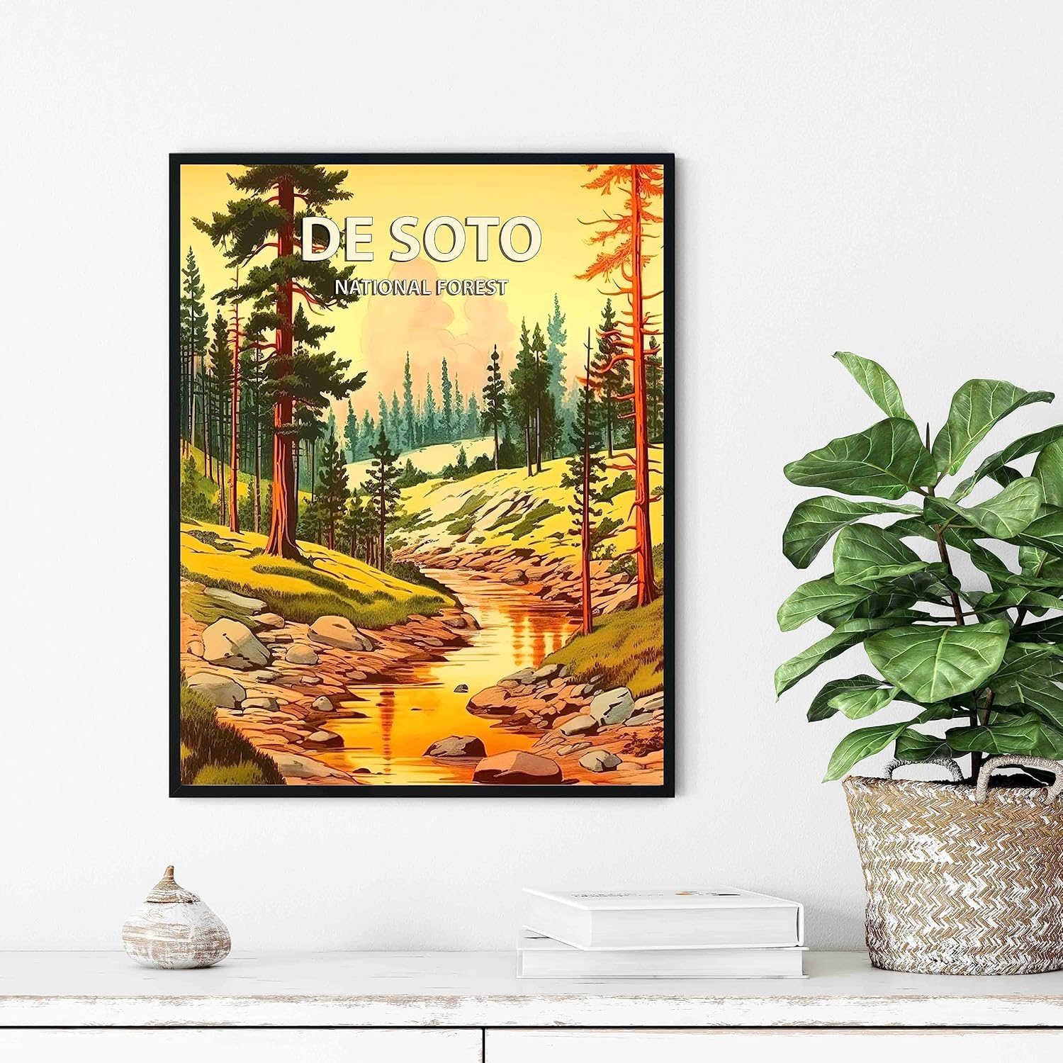 De Soto National Forest Poster Art Print Retro Mountain Wall Art Poster Vintage Decor Nature Recreation Wilderness Wildlife Decoration, Outdoor Adventure Scenic Beauty Artwork. (De Soto National