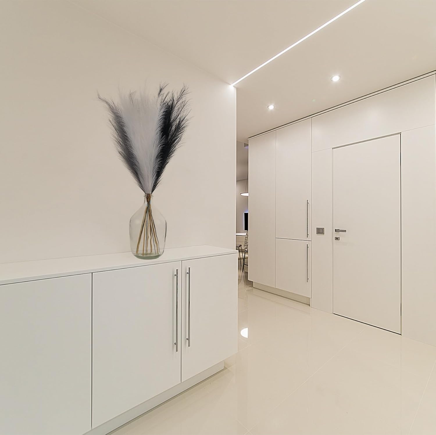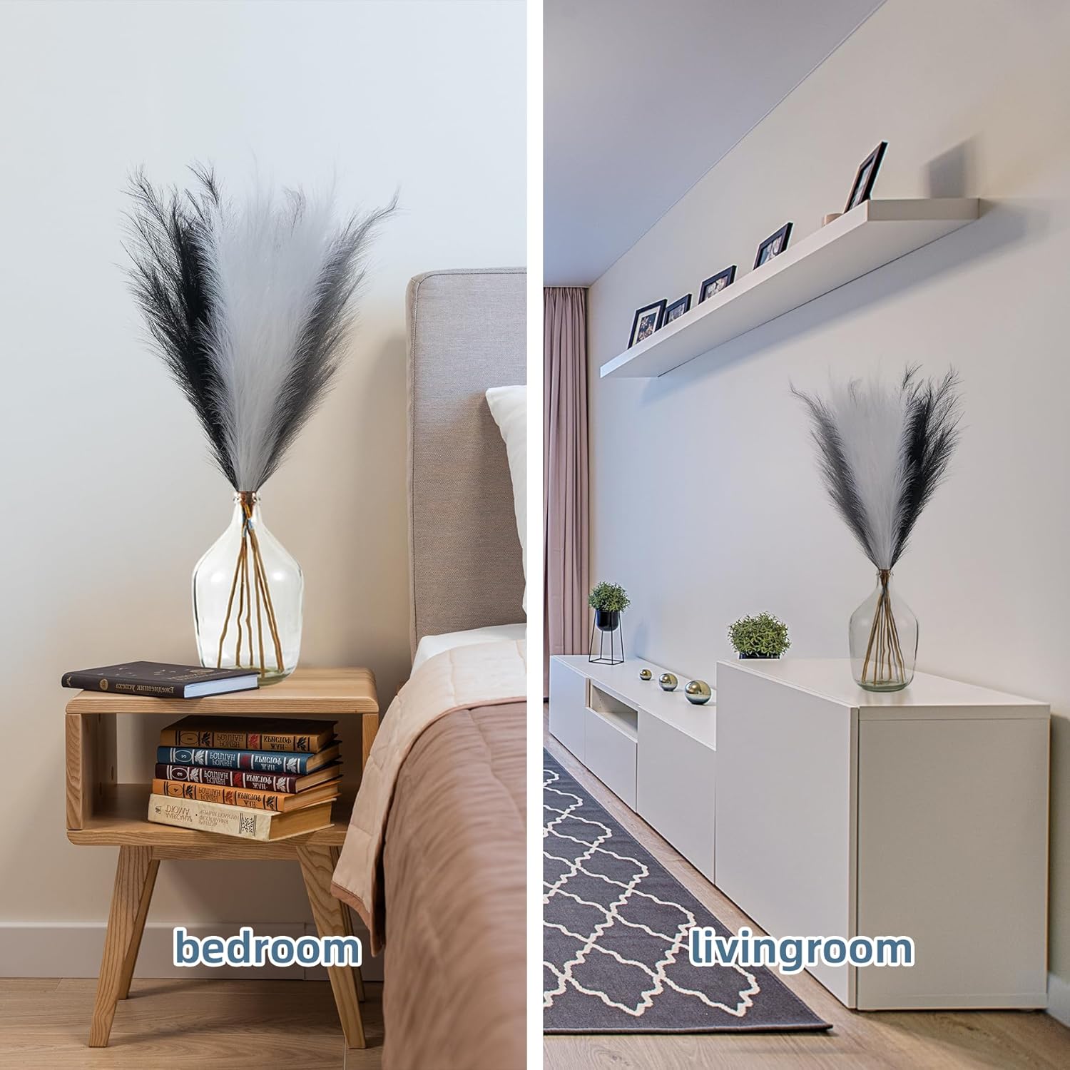 - Minimalistic&Elegant Pampas Grass Decor: Really nice faux pampas grass for home decor, display in your hallway, kitchen, living room, bedroom, front room, dining room, or entryway... any space. Pampas grass are also a great addition to weddings, flower arrangements, lifestyle photography, party, bohemian decorating and etc