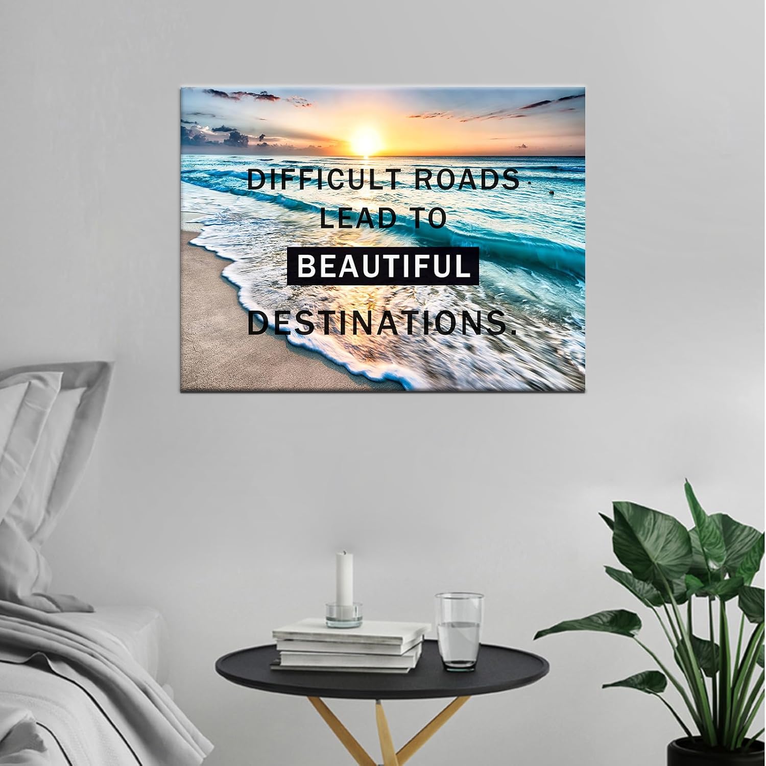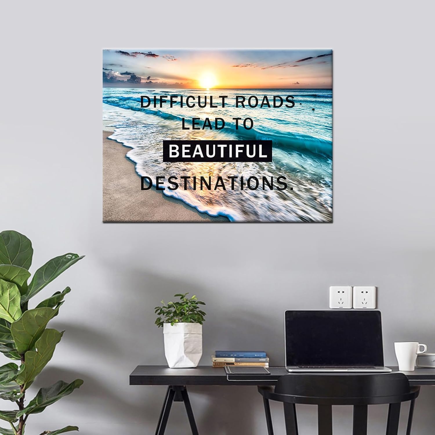 - [ INSPIRE DECOR ] This motivational wall art accompanied by the inspirational quote "Difficult road lead to beautiful destinations." Encouraging positivity and passion in your daily life.