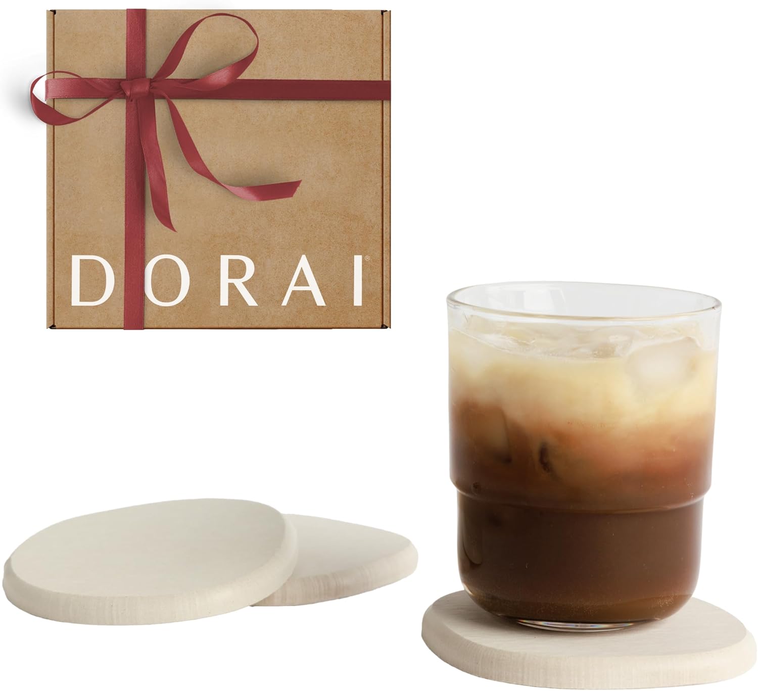 Dorai Home Stone Coaster Set – 4 Absorbent Diatomite Coasters for Instant Drying, Modern Design, Sandstone