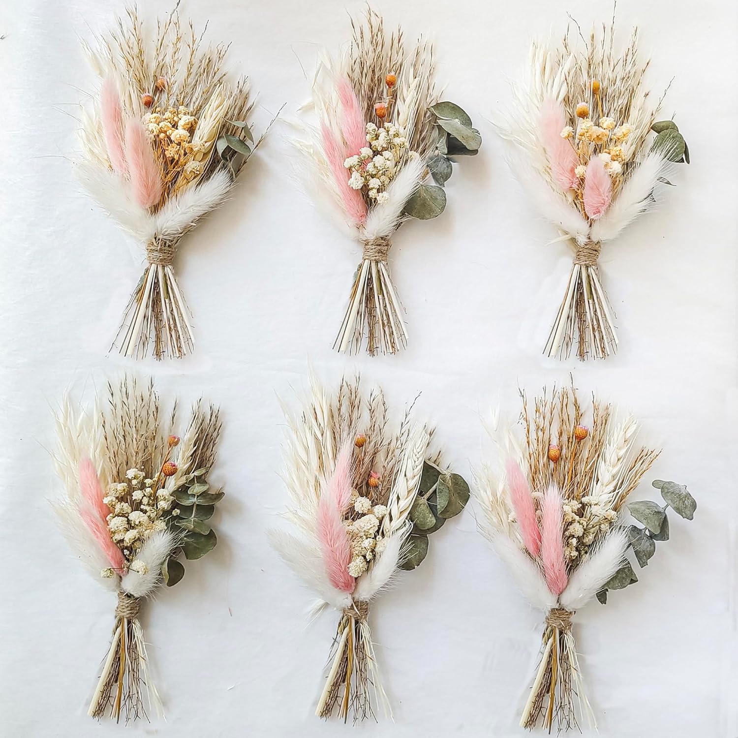 - Mini natural dried flower bouquet is a great gift for bridesmaid flower girl, small table vase, bohemian wedding decorations, groom and groomsmen wedding boutonniere 6-piece set, all kinds of holiday matching gift boxes, home decor or add to your personalized gift.