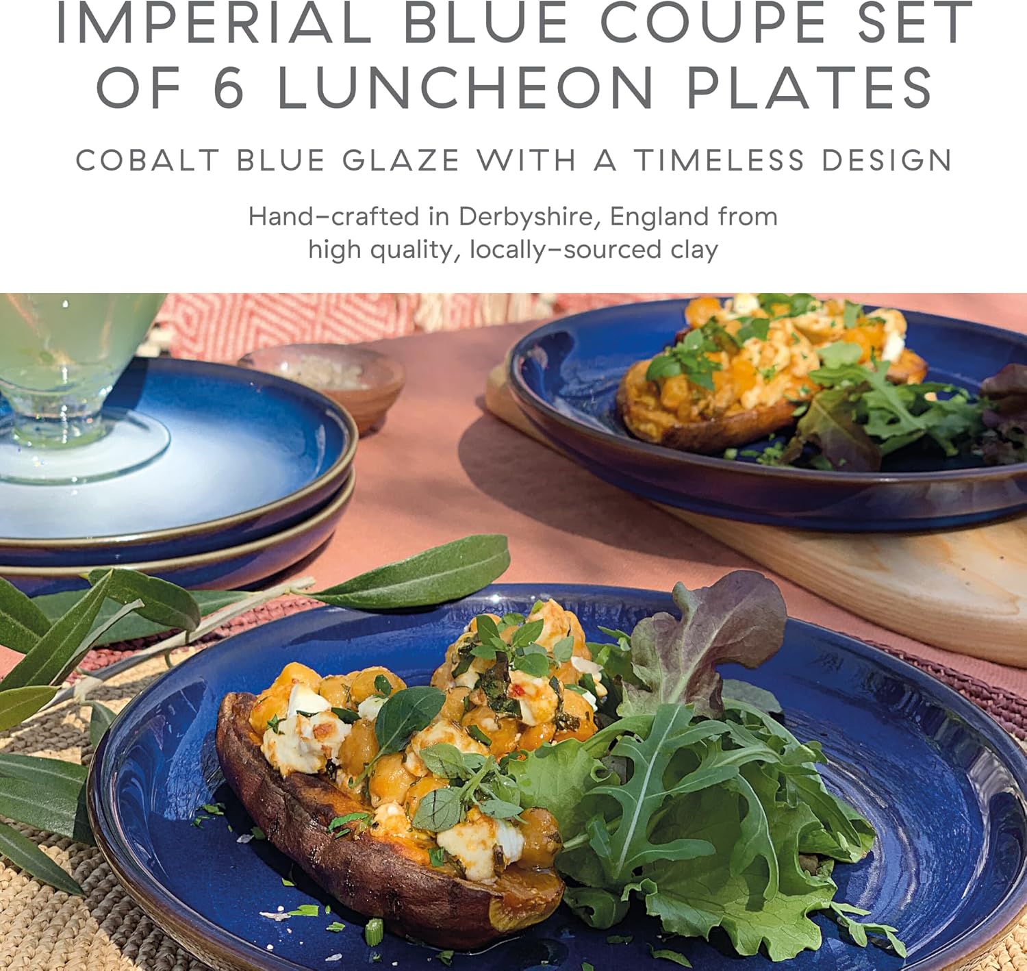 Denby - Imperial Blue Coupe Salad Plates Set of 6 - Dishwasher Microwave Oven Safe - Scratch Chip Resistant Medium Lunch, Appetizer, Dessert Plates - 8.25 Inch Ceramic Stoneware Dinnerware Set