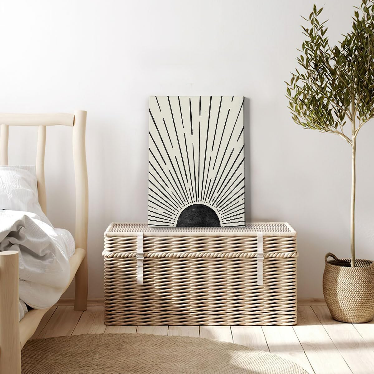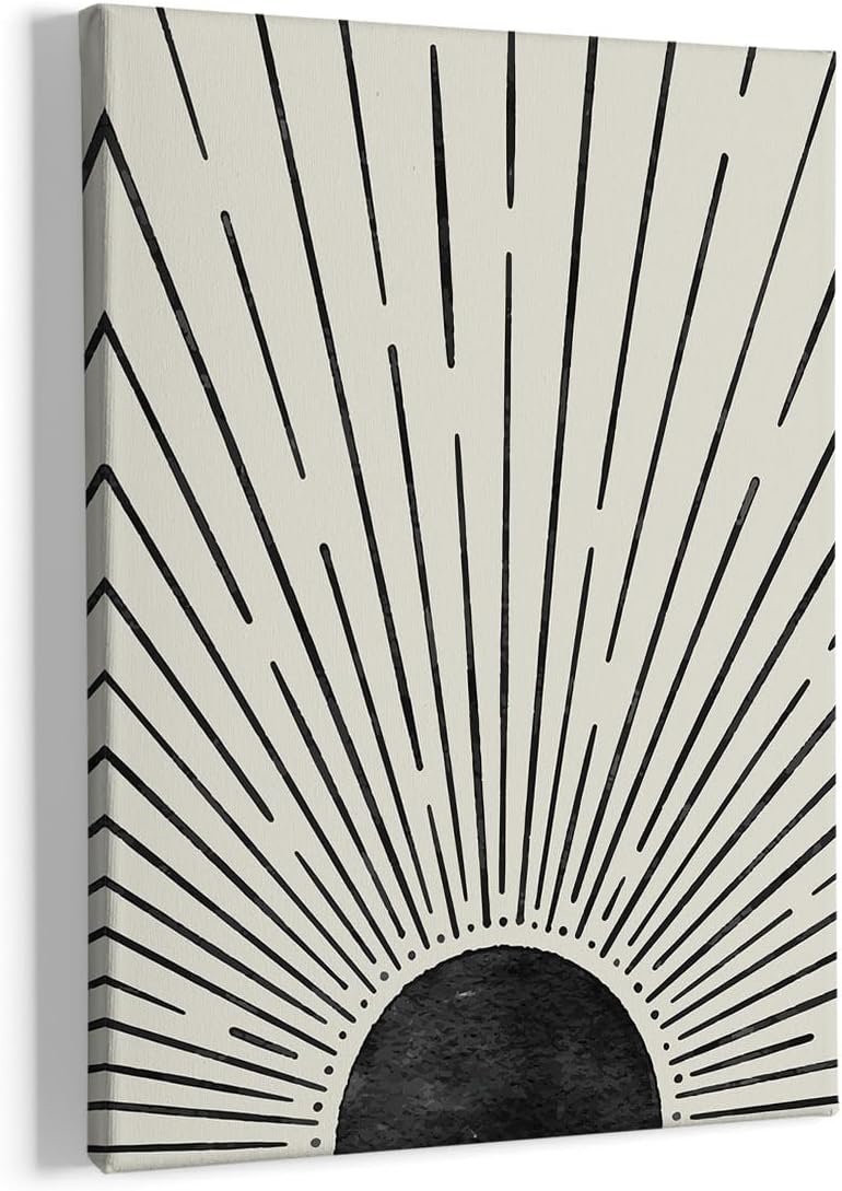 HIWX Boho Sun Framed Canvas Pictures, Boho Wall Art, Sunrise Wall Decor for Bathroom, Office, Bedroom (11x14, Black)
