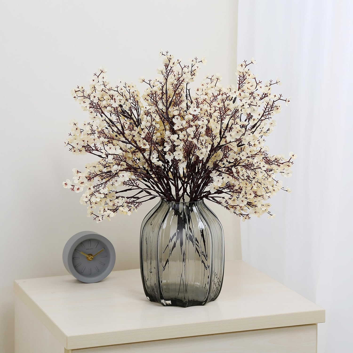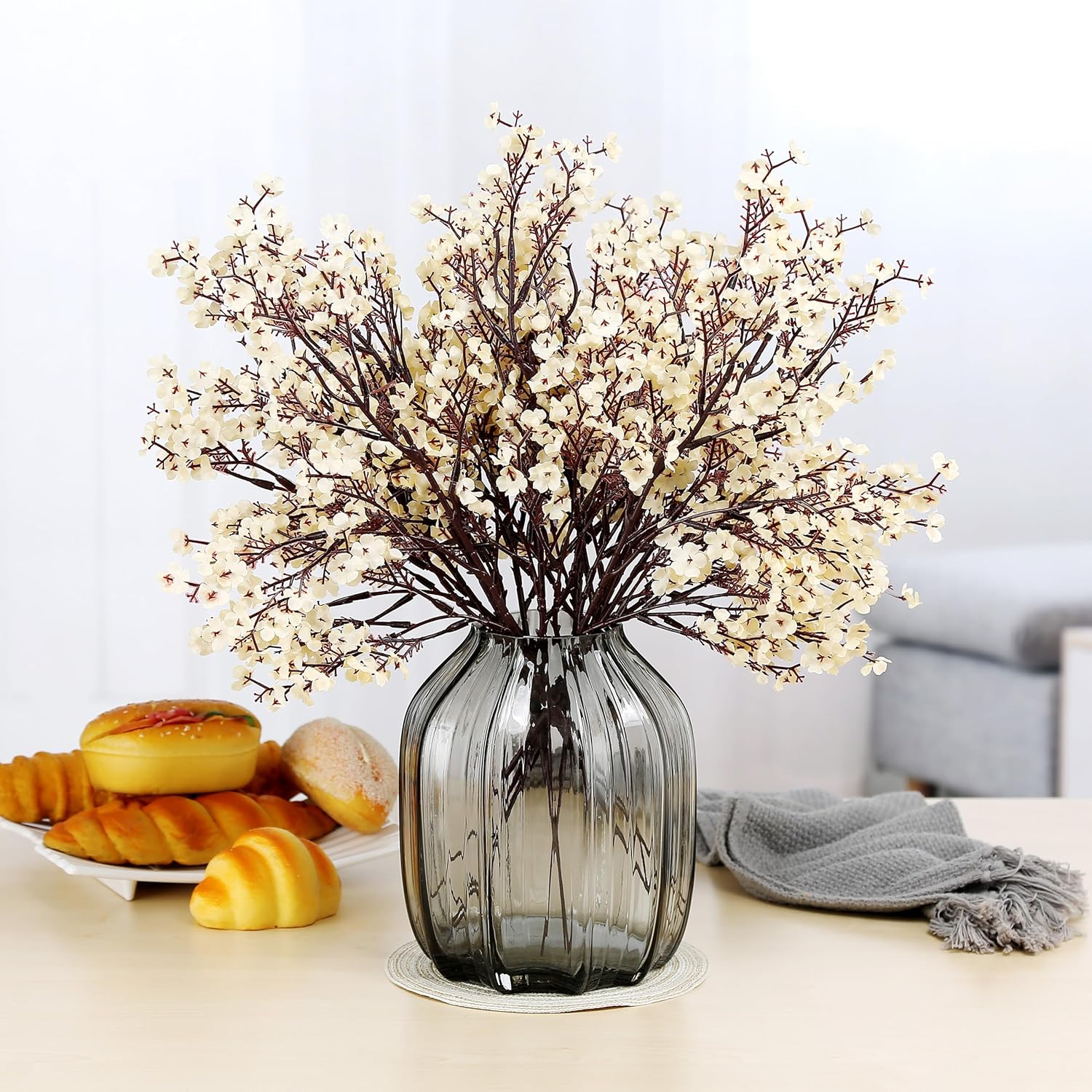 - Packet: 12 Bundle Gypsophila Baby'S Breath bulk artificial flowers (Vase and other accessaries are not included.), In order to reduce the volume of packaging during transportation,Each flower's flower stem is bent.Do not worry,This will not harm the flower pole.Can easily return to the original state.