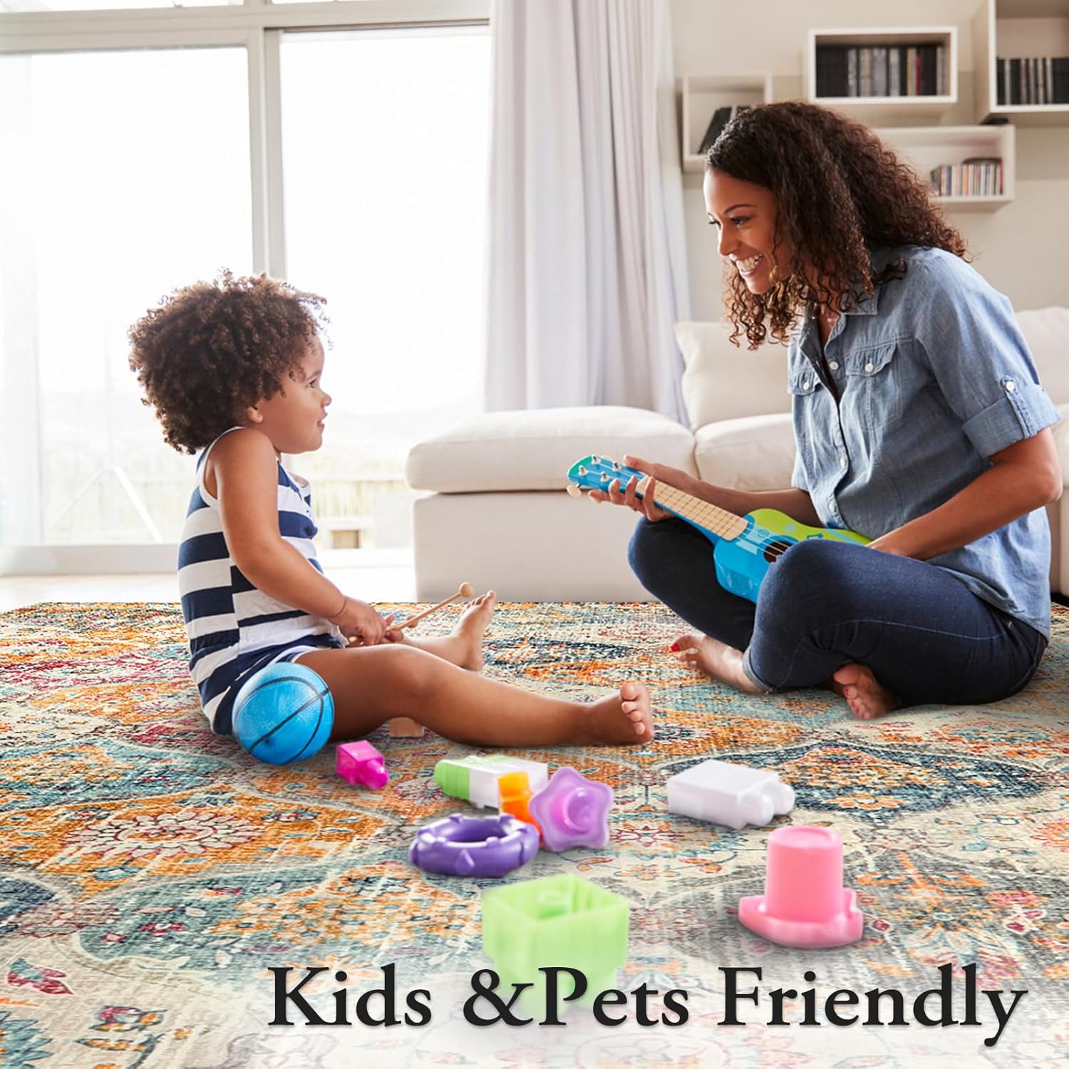 - Kid and Pet Friendly: Stain-resistant and dining room rug designed to withstand constant use and jumping from children and pets. The low-lint design can effectively prevent the accumulation of hair and dust, creating a clean environment for children
