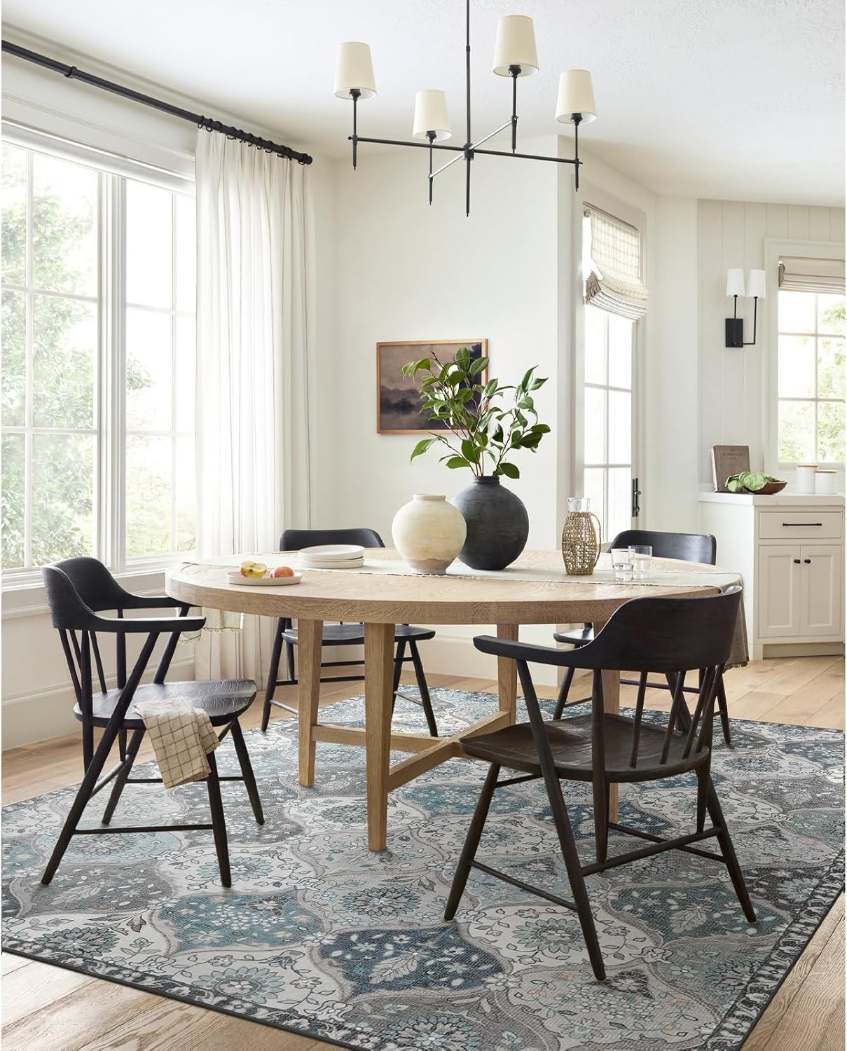 - Kid and Pet Friendly: Stain-resistant and dining room rug designed to withstand constant use and jumping from children and pets. The low-lint design can effectively prevent the accumulation of hair and dust, creating a clean environment for children