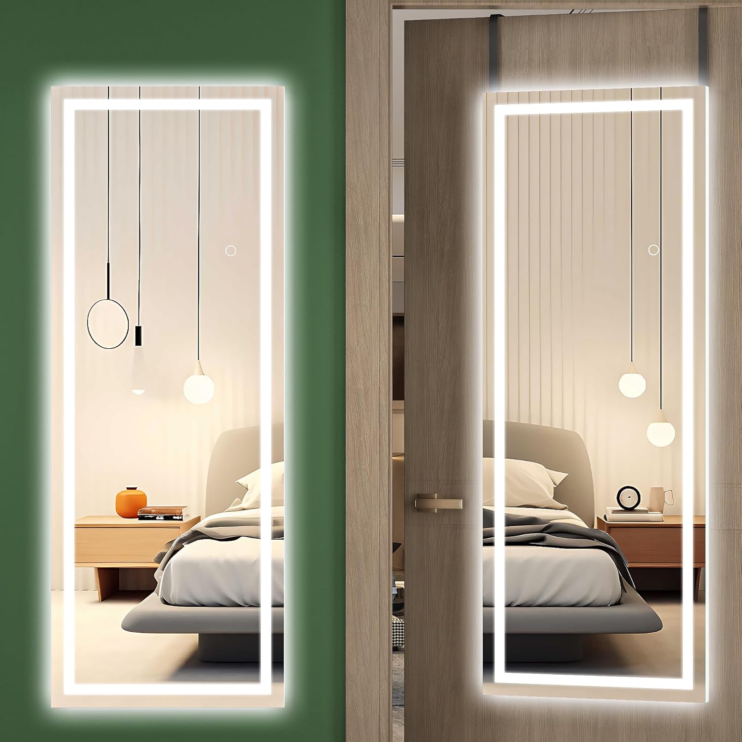 - 👍【Reliable & Safety Protection】The door mirror surface is clear and bright, giving distinct, lifelike image and well-lit reflection, more convenient for you to complete dress up or makeup. The full-length mirror is covered by an explosion-proof membrane for shattering prevention. It prevents the glass from falling even if the mirror is impacted by an external force, making it safer and more protective against injury.