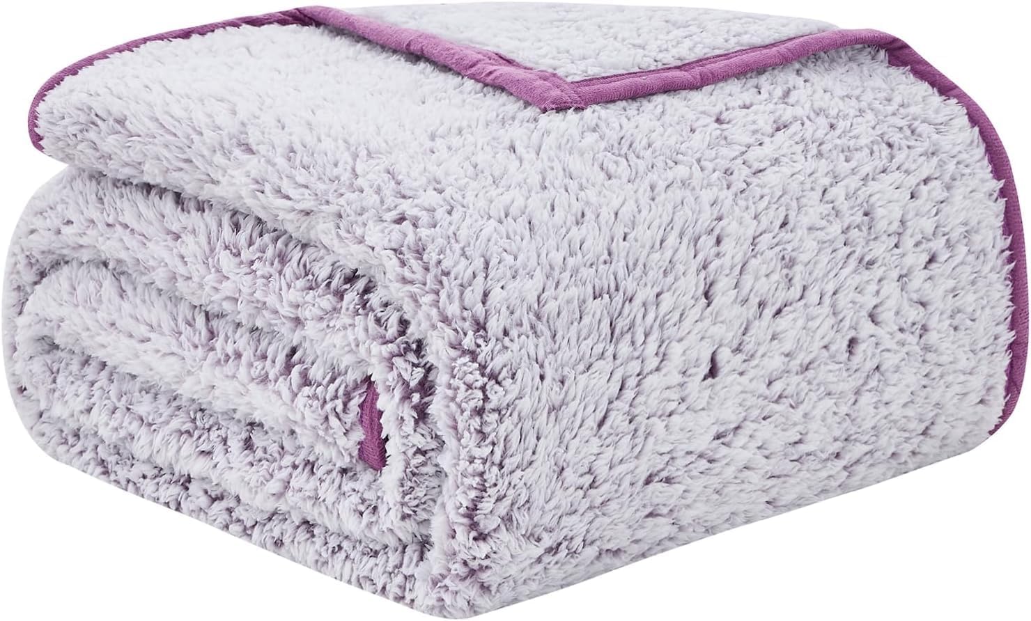 EMME Fleece Twin Blanket, 60x80in, Plush Purple, Soft, Lightweight, Reversible, Warm
