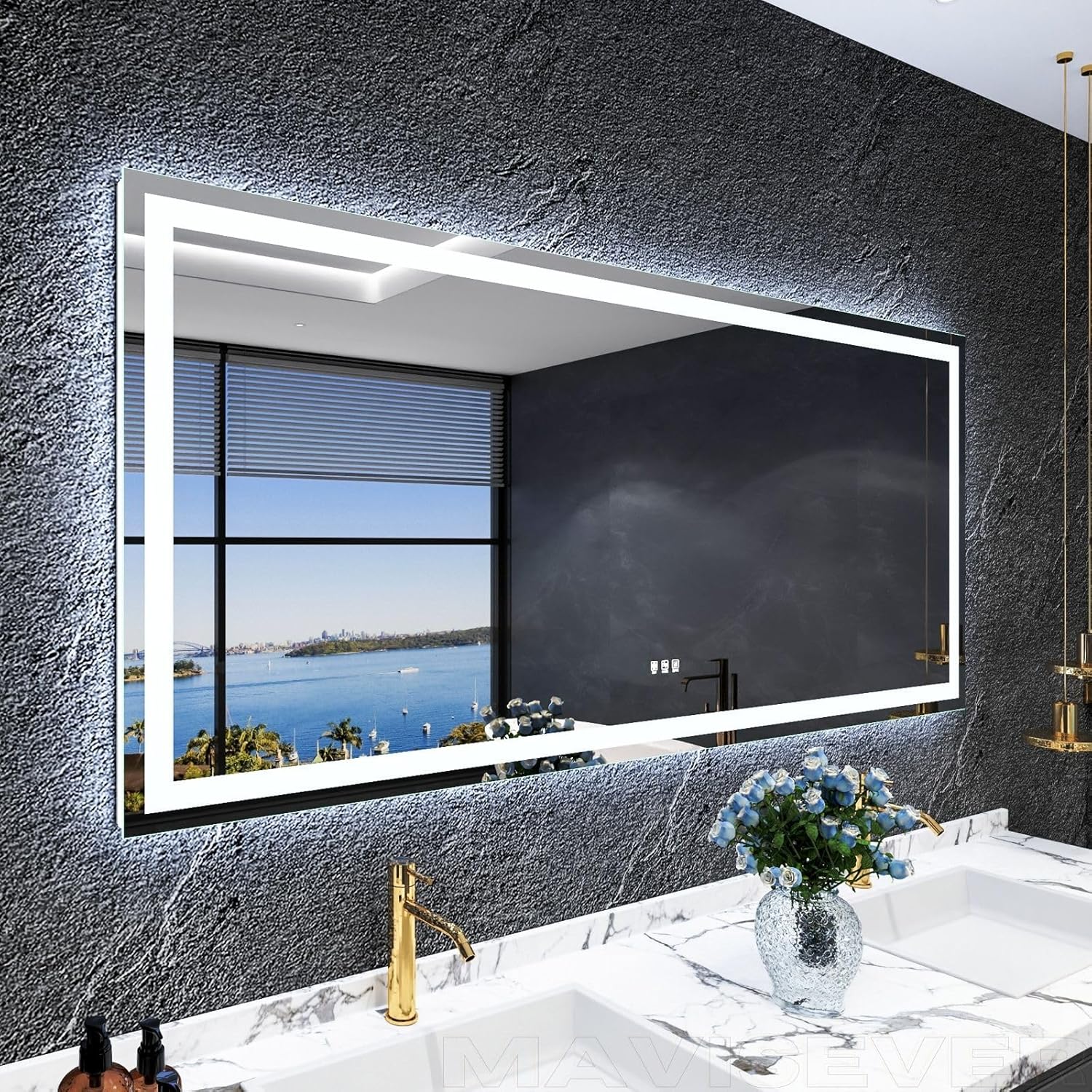 - 💡【Brighter & Clearer】MAVISEVER LED bathroom mirror - Double Illumination, Front&Back LED Strips - Ideal for makeup, Shaving, and Grooming - No Dark, No Shadow - CRI >95 - Energy-Efficient, 100000+ hours lifespan. Perfect vanity mirror with lights!
