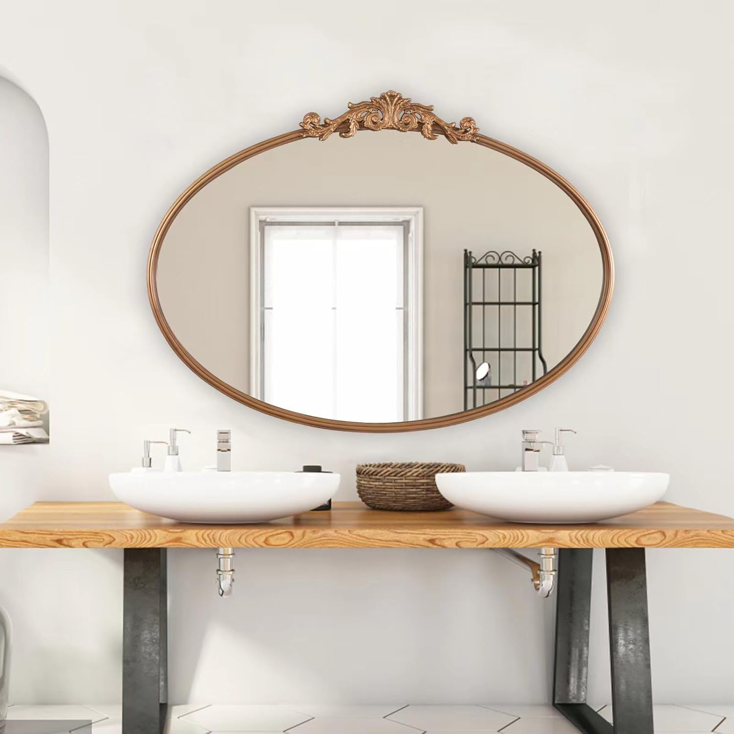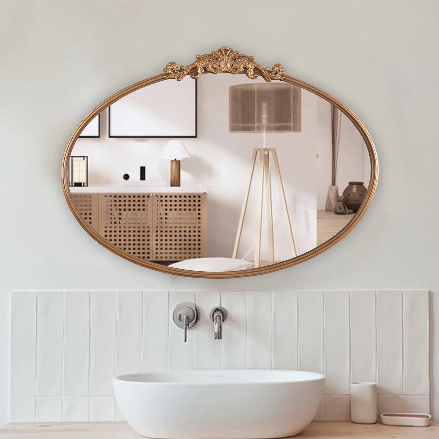 Gold Oval Mirror for Wall,Baroque Fireplace Decor,Brass Wall Mirror,Victorian Vintage with Full Matel Frame,Ornate Entryway/Bathroom/Living Room/Hallway 36''X24'' (XD-004ZM)