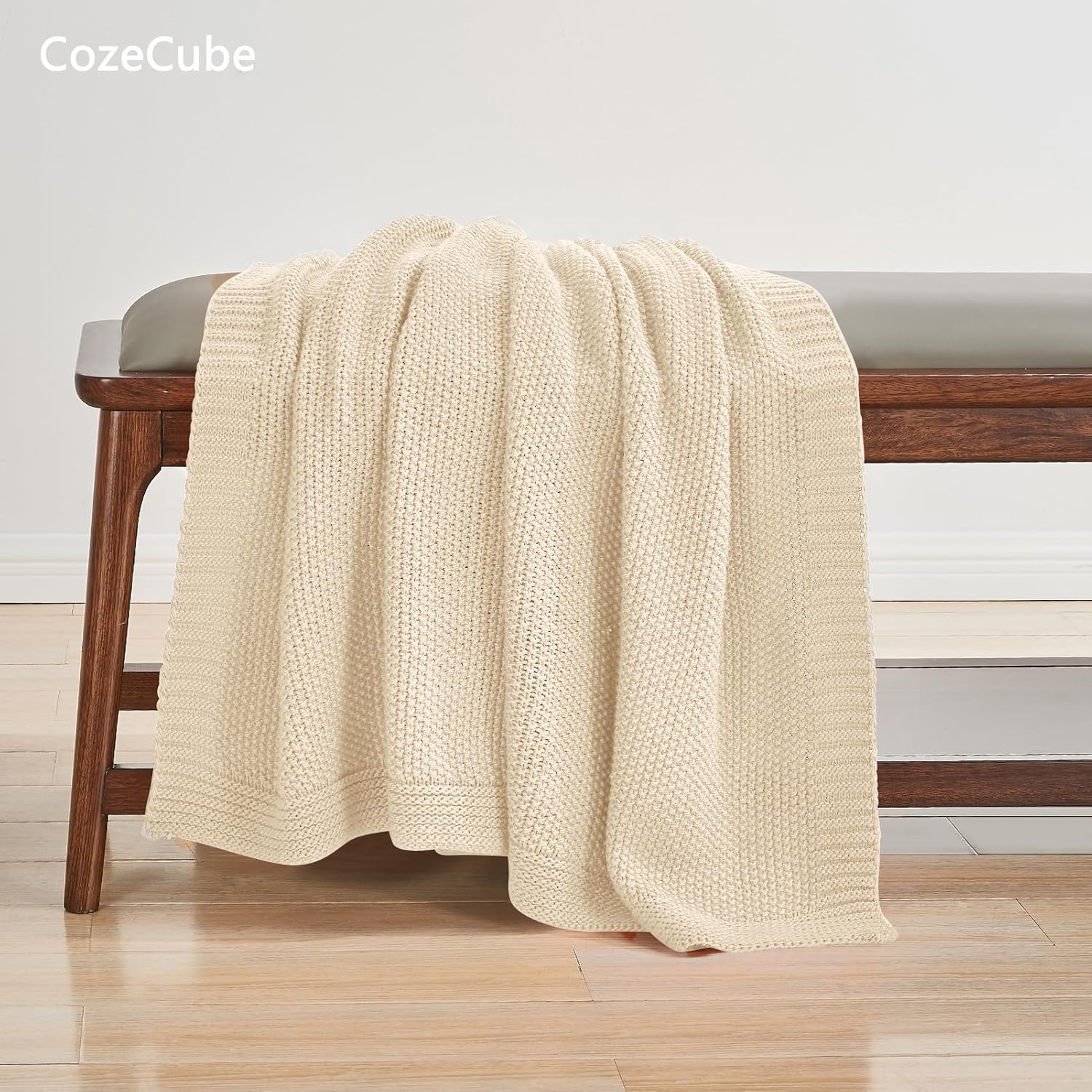 CozeCube Beige Throw Blanket for Couch, Soft Cozy Cable Knit Throw for Bed Sofa Living Room, Lightweight Warm Decorative Farmhouse Christmas Blanket, 60"x80", Light Beige