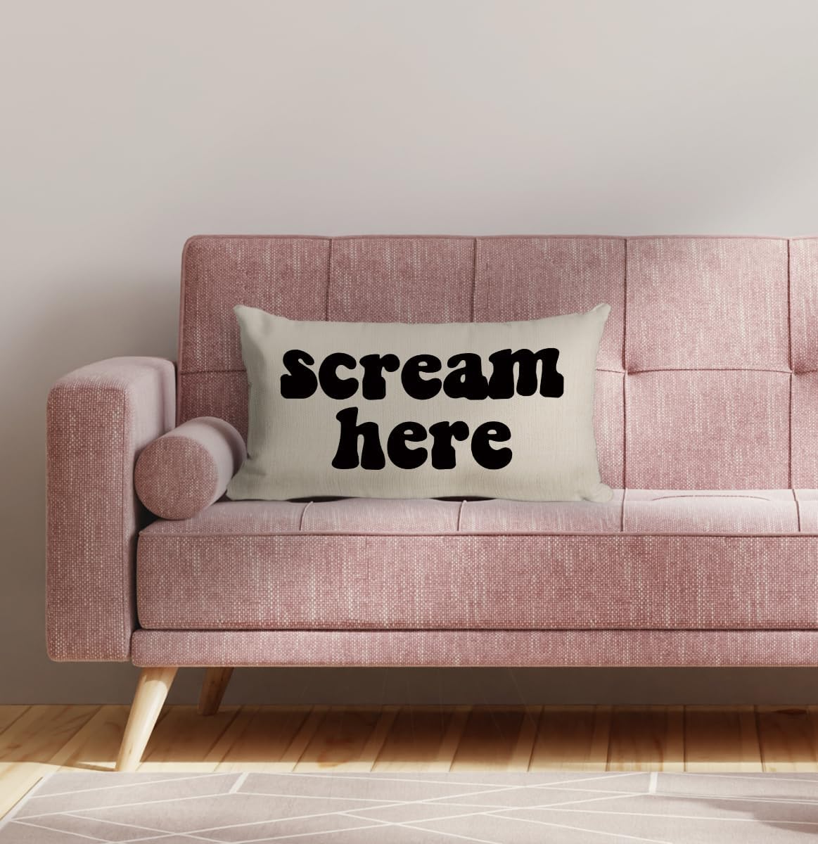 Mancheng-zi Funny Scream Decor, Scream 12x20 Pillow Cover, Fun Pillows,Fun Throw Pillows,Funny Throw Pillows,Fun Decorative Pillows,Scream Here Funny Humor Throw Pillow Case(Cream)
