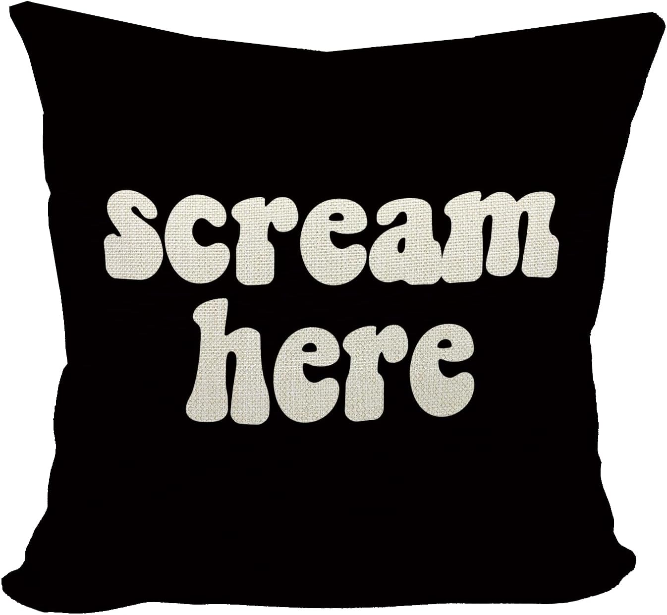 Mancheng-zi Funny Scream Decor, Scream Pillow Covers 18x18, Fun Pillows,Fun Throw Pillows,Funny Throw Pillows,Fun Decorative Pillows,Scream Here Funny Humor Throw Pillow Case(Black)