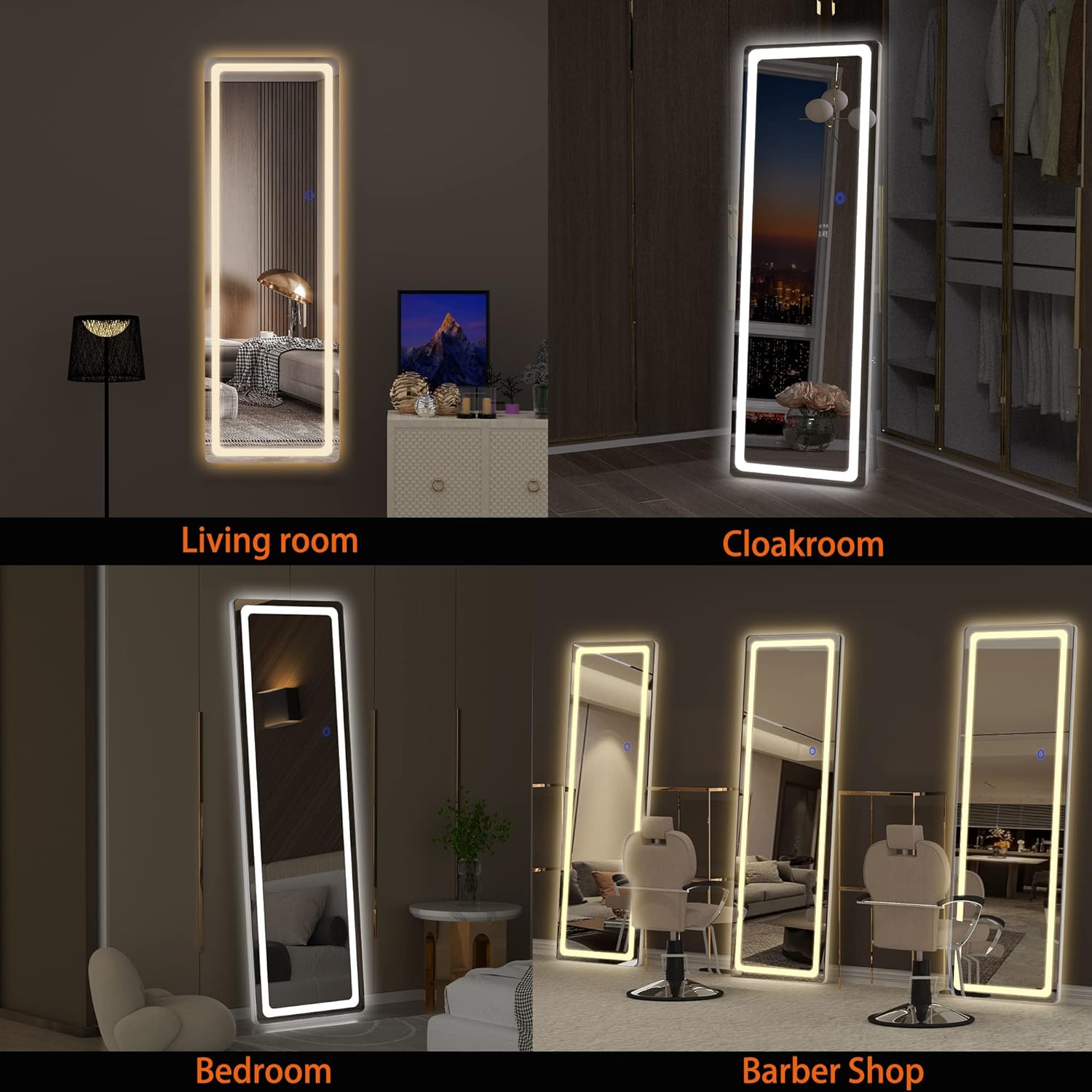 - 【Dimmable & 3 Color Temperature】This lighted full length mirror is multifunctional. You can press the button to change the color temperatures: Warm(3000K), natural (4000K) and white(6000K). You can also dim the brightness to your comfortable level. All these will be easily controlled by the touch button.