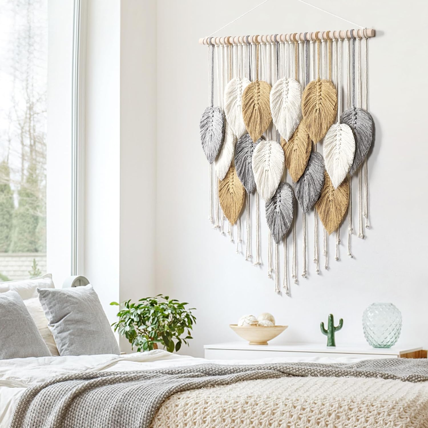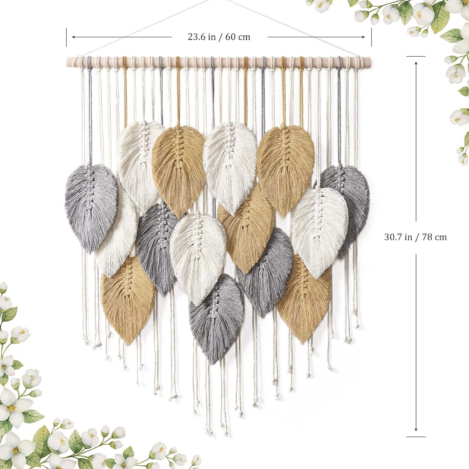 LOMOHOO Macrame Wall Hanging Leaves Boho Wall Decor Bohemian Handmade Woven Wall Art Decoration for Bedroom Living Room Apartment Dorm Gallery Perfect Handmade Gift Ideas 23.6" W x 30.7" L