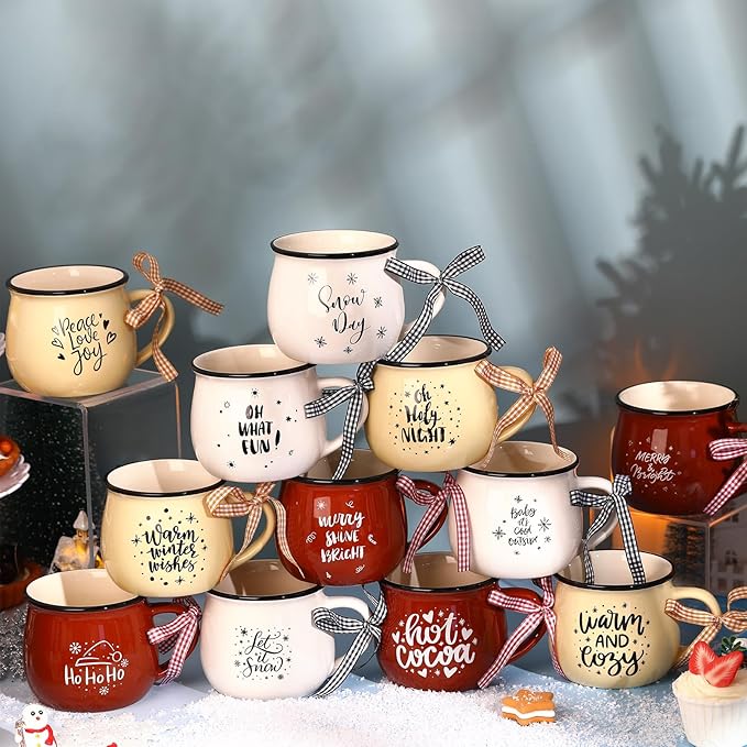 - Christmas Themed Design: the Christmas mug set is designed with warm and joyful words of [let it snow], [warm and cozy], [oh holy night], [warm winter wishes] and more, catering to the festival and joyous Christmas atmosphere, and the classic colors of Christmas, namely white, yellow, and brown, can match up well with a variety of occasions