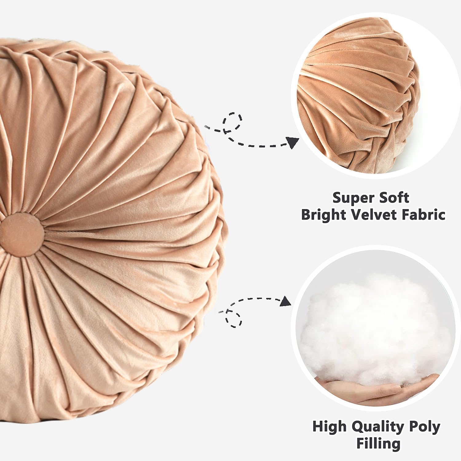 - EXQUISITE HANDCRAFTED PLEATED DESIGN: This decorative round pillow with unique pumpkin shape is soft to the touch and has extra style with it’s pleated detailing. The intricately pleated design is sewed by hand, not by machine, which is more delicate and high-end. The elegant button in the middle ties together the complete look.