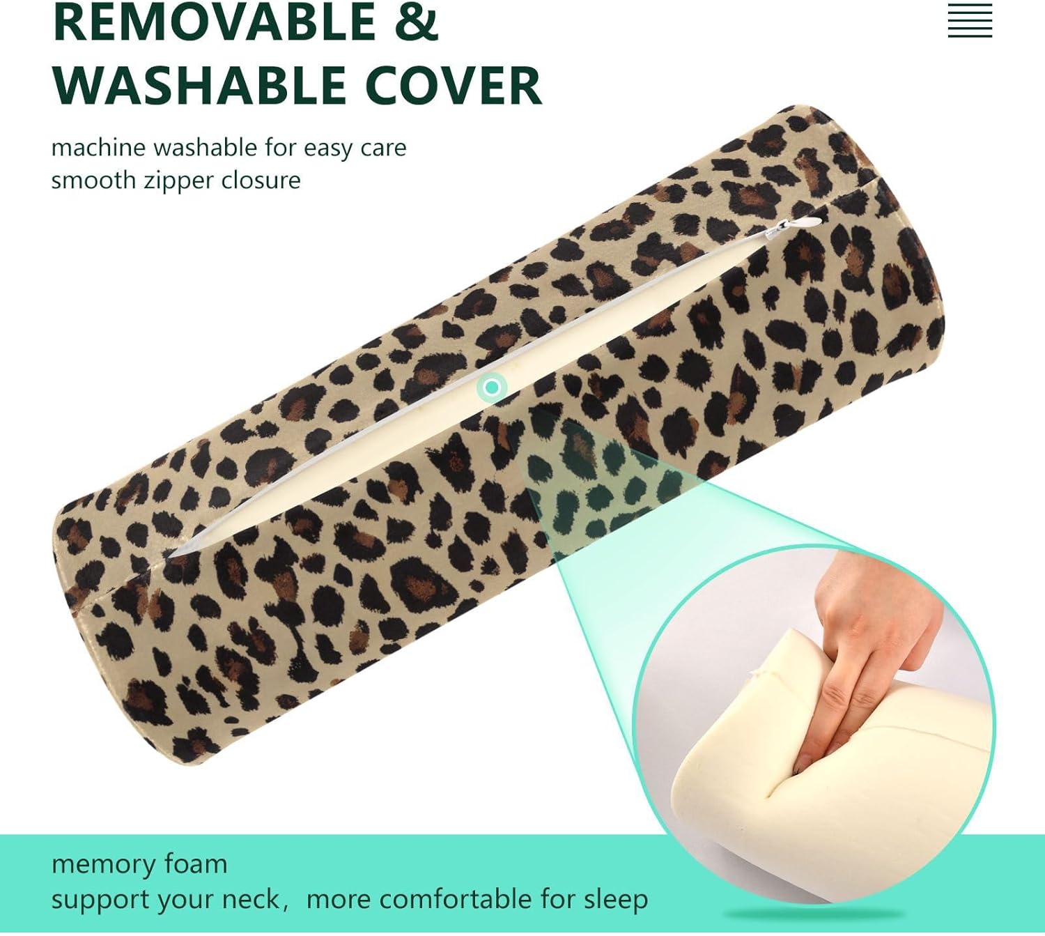 Leopard Print Bolster Pillow, Round Pillow for Bed with Removable Washable Cover, Cylinder Pillows for Head, Neck, Back and Legs Cervical Neck Pillow Sleeping 5.5 x 17 Inch