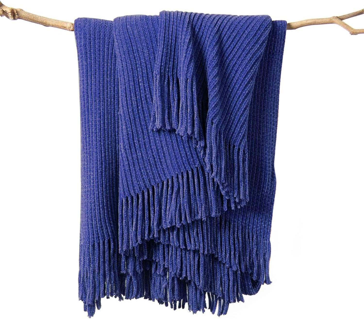 lifein Throw Blanket for Couch, Soft Boho Decor Bed Throw,Cozy Blue Chenille Knitted Small Farmhouse Lightweight Throw (Blue,60 * 80")