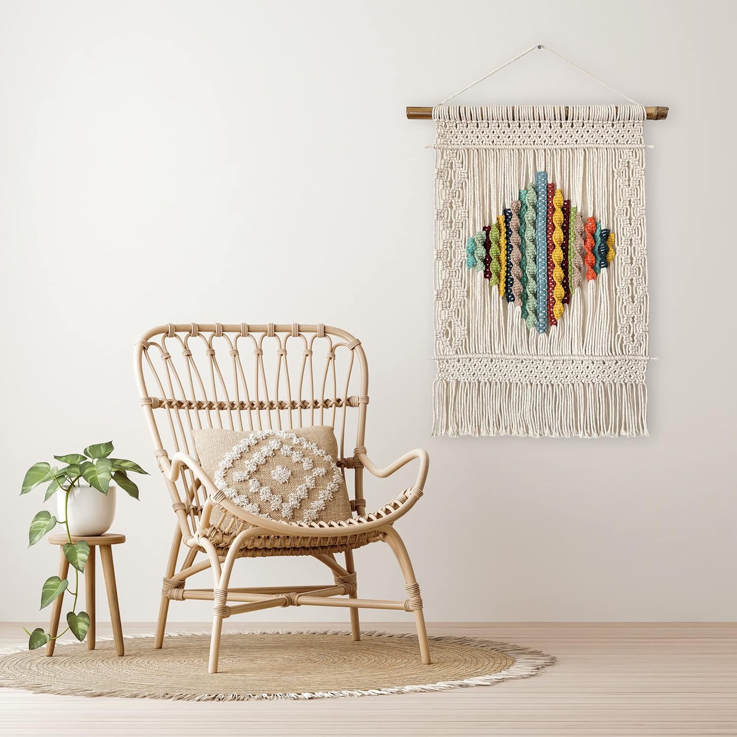 - 📌Ready to Hang: Comes with a hanging cord attached to the bamboo wood dowel making it simple to hang, an easy-to-hang macrame wall decor