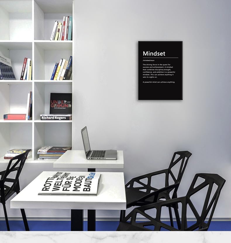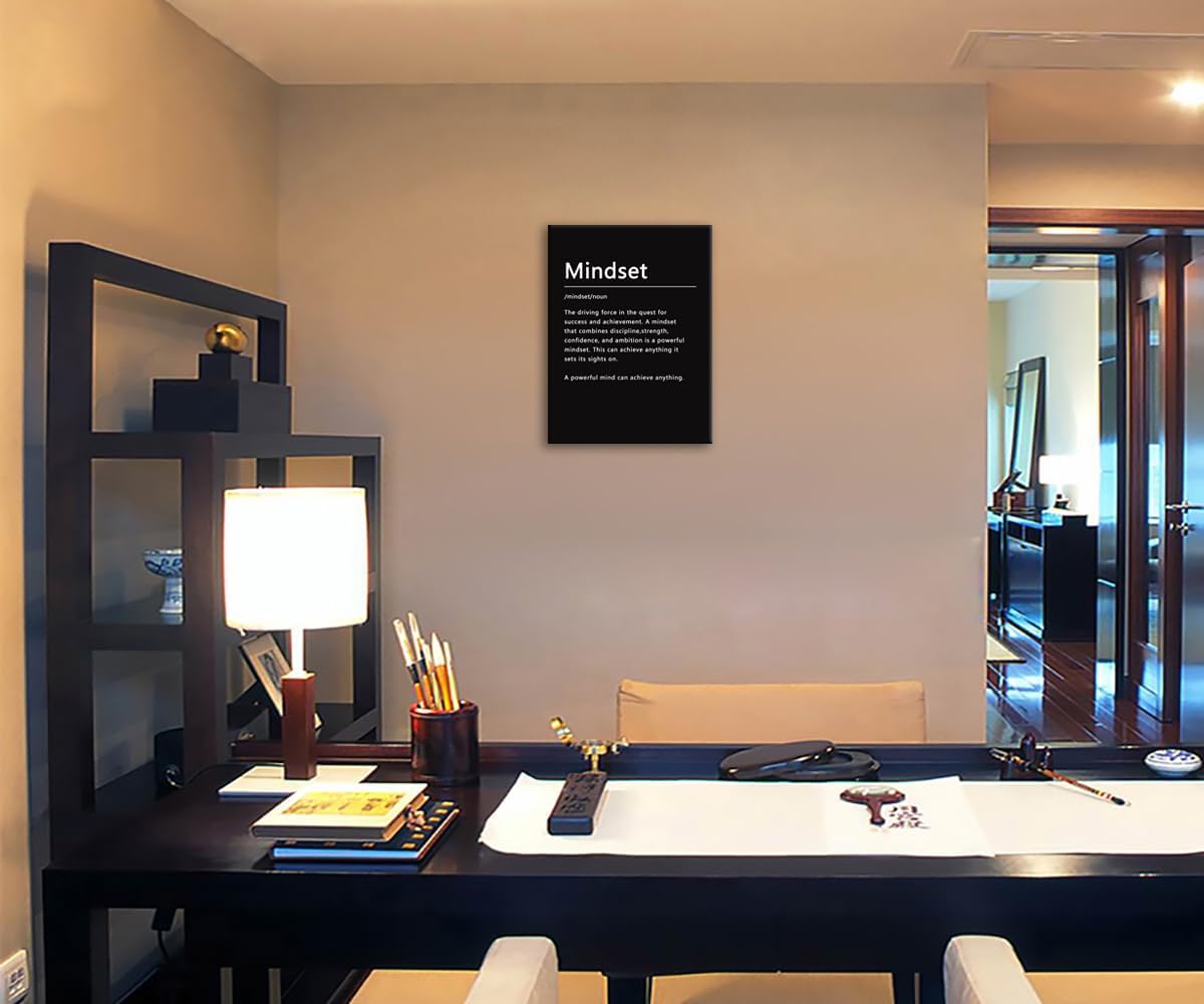 Mindset Noun Motivational Canvas Wall Art Picture Inspirational Posters Inspiring Entrepreneur Quotes Painting Print Artwork Office Decor Home Gym Living Room Framed Ready to Hang[18''W X 24''H]