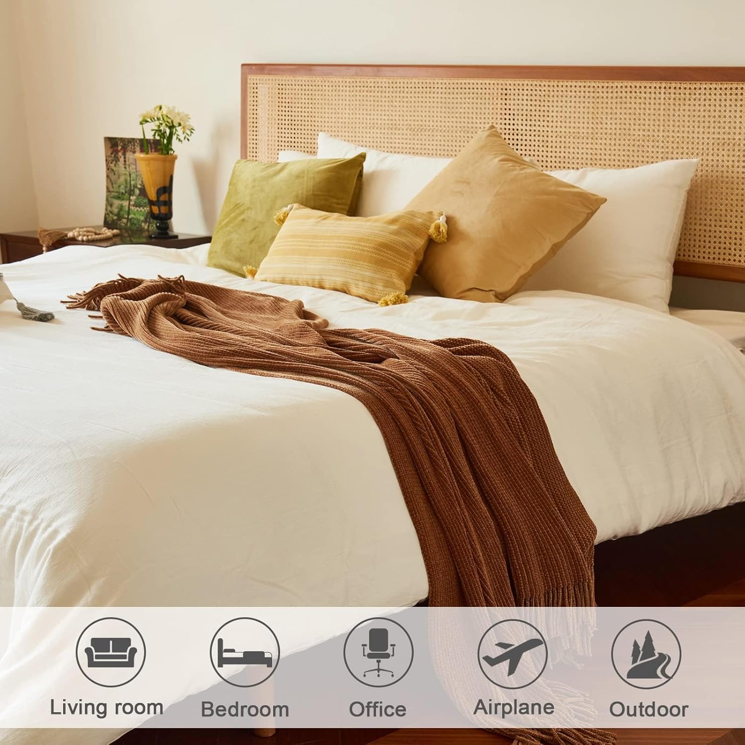 lifein Throw Blanket for Couch, Soft Boho Decor Bed Throw,Cozy Brown Knitted Chenille Small Farmhouse Lightweight Throw (Golden Brown,60 * 80")