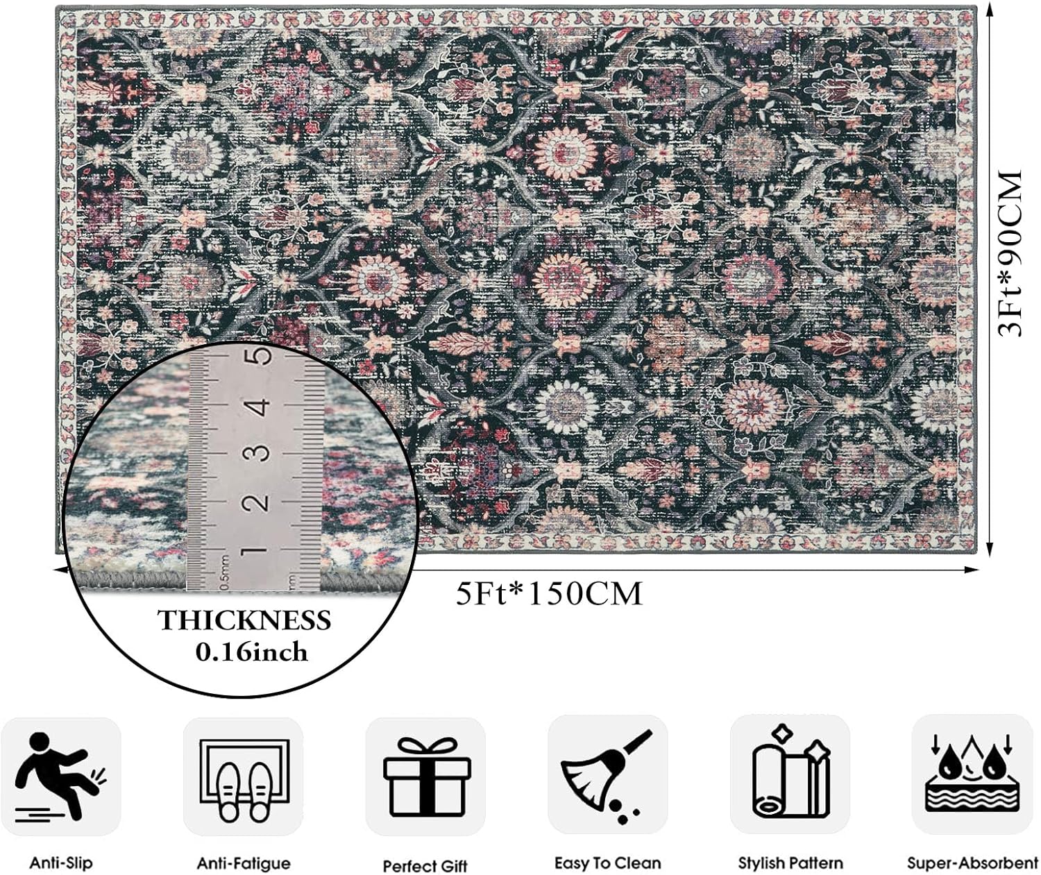 - Kids and Pets Friendly: 0.16 inch low pile rug, pet dander and hair won't get trapped inside, prevents pets and children from chewing or scratching. Pets' paws won't get snagged or get caught on edges causing them to scratch floors