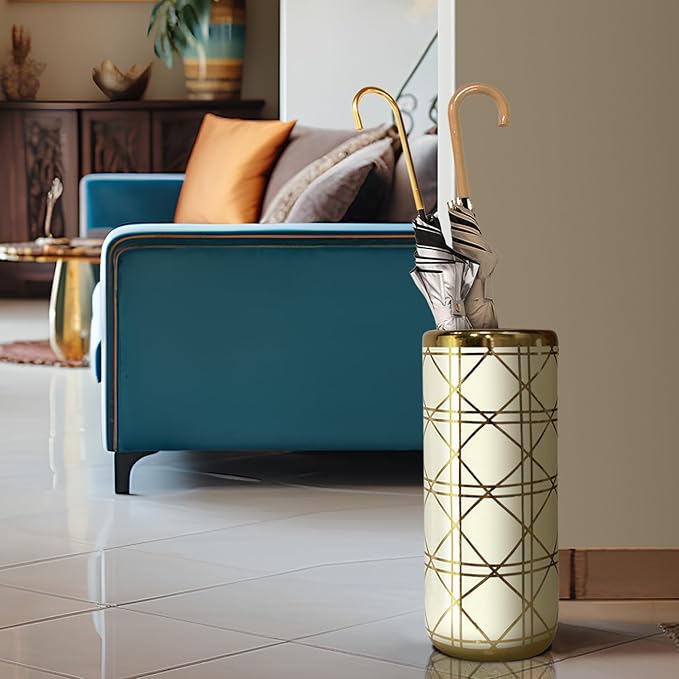 - 【Functional】 It has a simple yet elegant design and can accommodate multiple umbrellas at the same time which helps you to keep your umbrellas organized and within reach during rainy or snowy days. And it can blend with any style of home decor, adding a modern or contemporary appeal to it.
