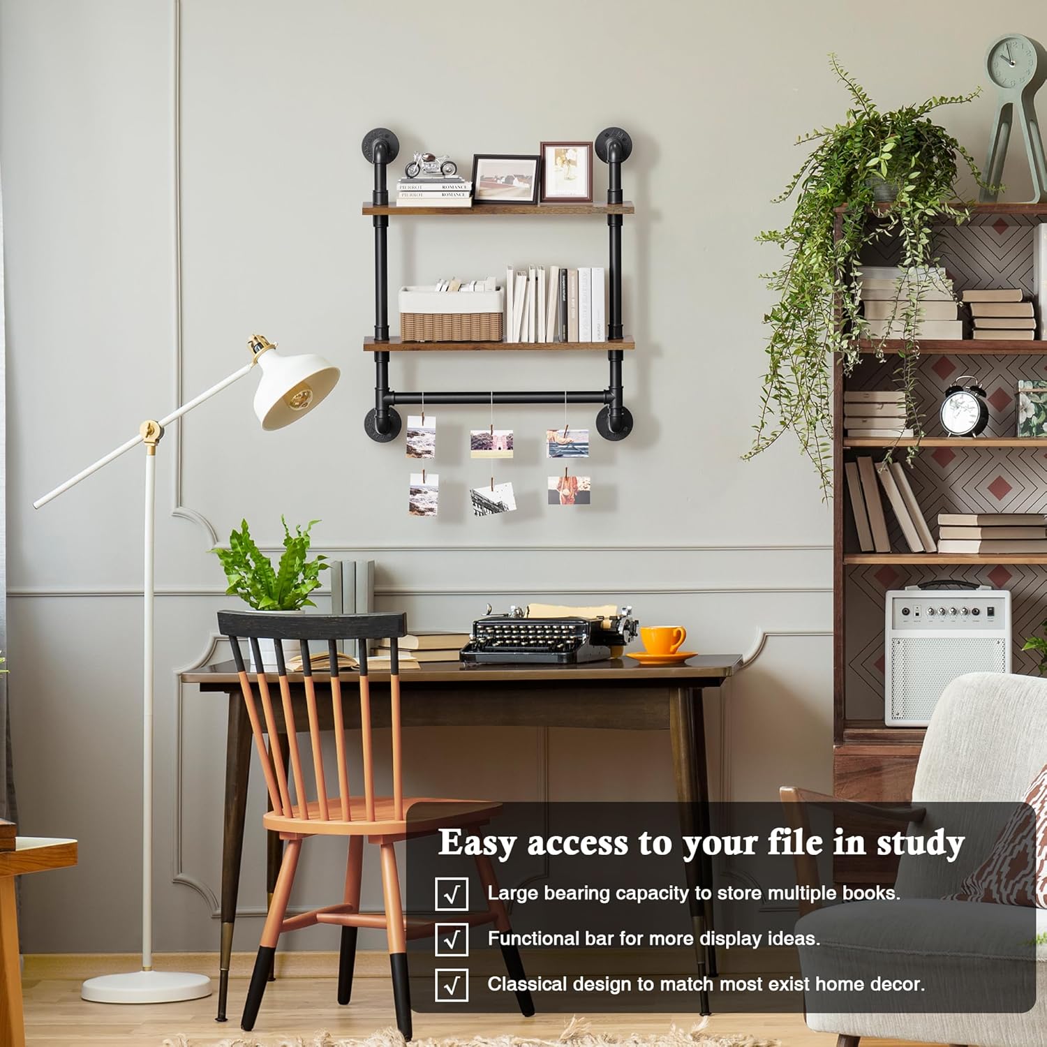 Merapi 24" Industrial Floating Shelves with Tower Bar, Pipe Shelves for Wall, 2 Tier Rustic Wood Wall Shelves for Home Décor, Bedroom, Living Room, Bathroom…