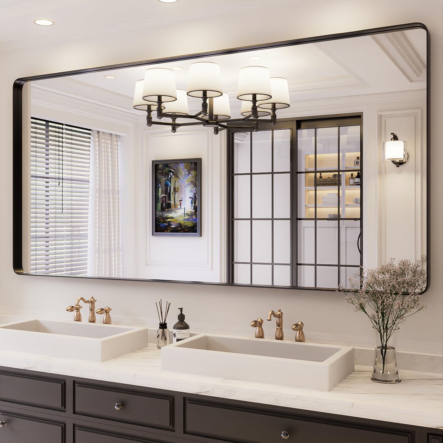 ISKM Black Framed Mirror for Wall 77"x 36", Large Bathroom Mirror Anti-Rust, Tempered Glass, Rounded Rectangle Mirror(Horizontal/Vertical)