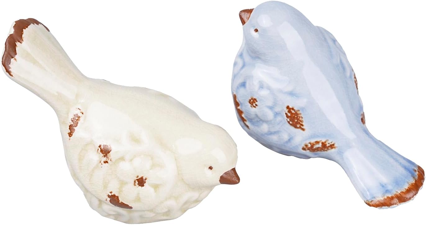 Distressed Ceramic Bird fgurines in Crackle Finish for Home and Outdoor Decor - Assorted Set of 2