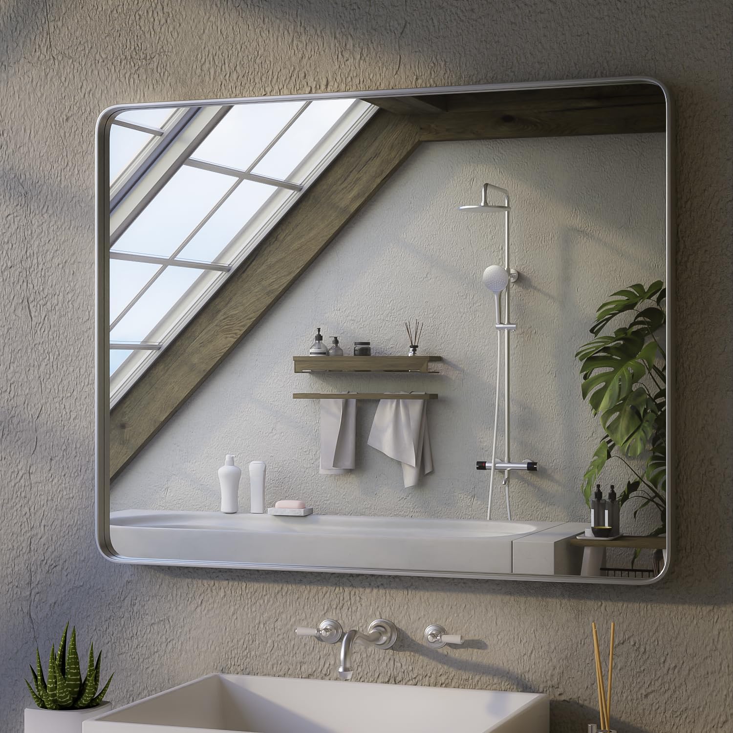 ISKM 36"x 30" Silver Bathroom Mirror for Wall, Bathroom Vanity Mirror Anti-Rust, Tempered Glass, Rounded Rectangle Mirror(Horizontal/Vertical)