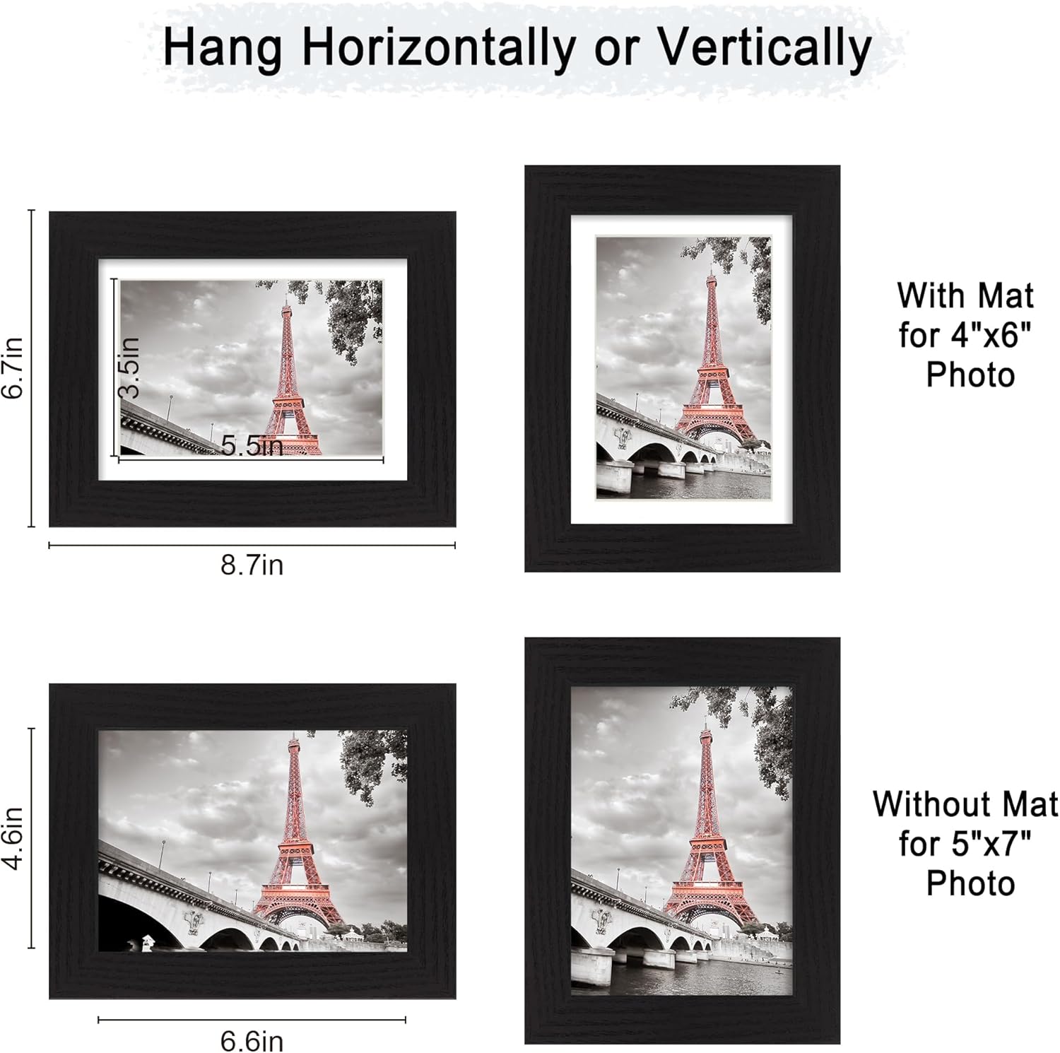 - Double Frames Set: Includes 2 frames in the same size. Perfectly fits 4x6 inch pictures with mat or 5x7 inch without mat. The frame opening display size is 0.5 inches smaller than the photo size for secure mounting.