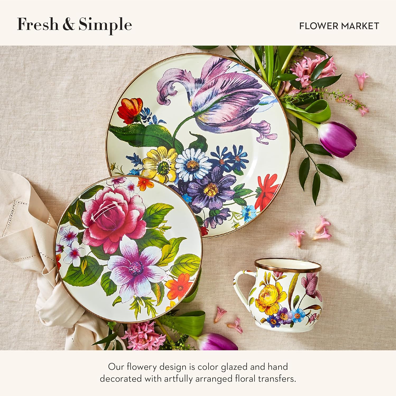 - ELEGANT SERVING ESSENTIAL: Our Flower Market Mug is the classic coffee mug for any occasion. This enamel cup has a heavy-gauge steel underbody and is decorated with fanciful hand-applied botanical transfers and a bronzed stainless-steel rim.