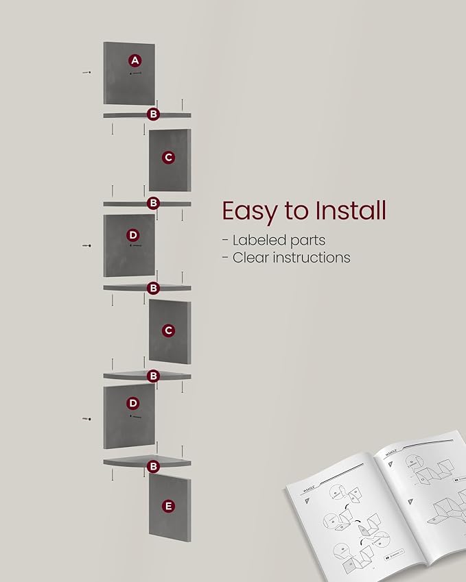 - [Modern Design] With its zigzag design and dove gray curved shelves, this wall-mounted corner shelf exudes a modern touch to enhance your living room, bathroom, and home office