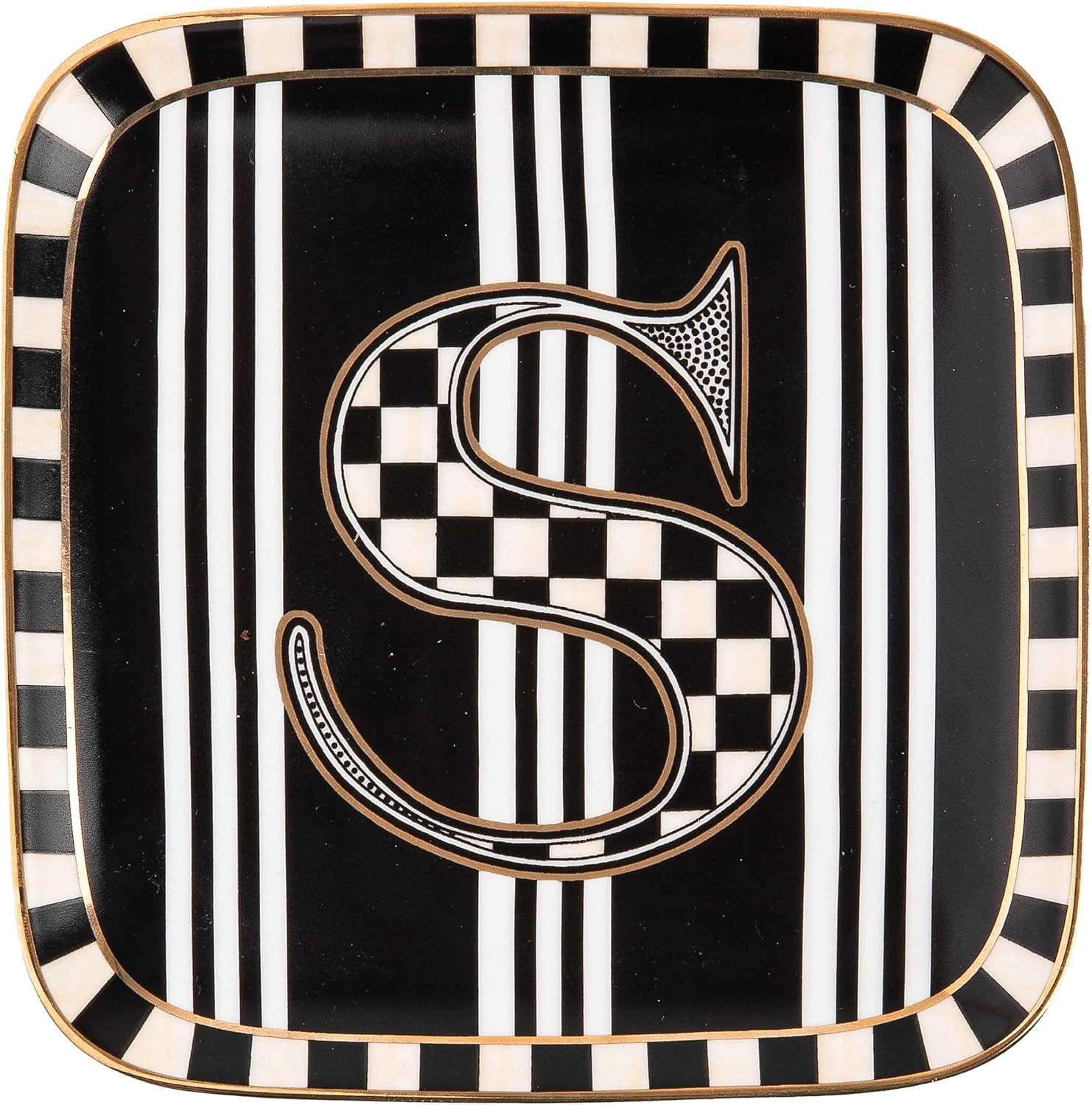 MACKENZIE-CHILDS Monogram Dish, Decorative Ceramic Letter Plate, 5 3/4" Square, S