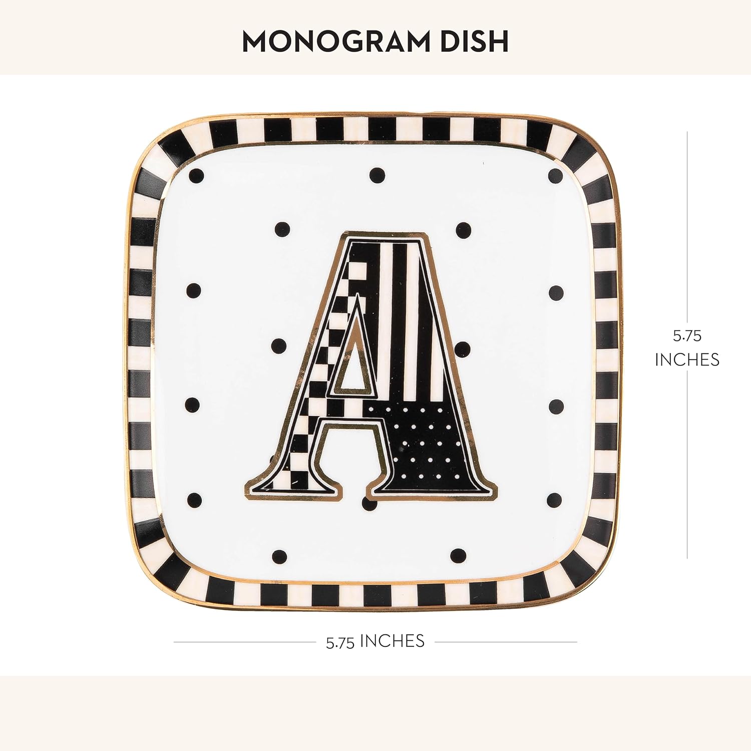 - CUTE LETTER TRAY: Each letter of the Monogram Dish collection is decorated in a combination of black-and-white patterns with a unique design. Picking your favorite letter gives you a custom small plate to use for extra-special meals or as room decor.