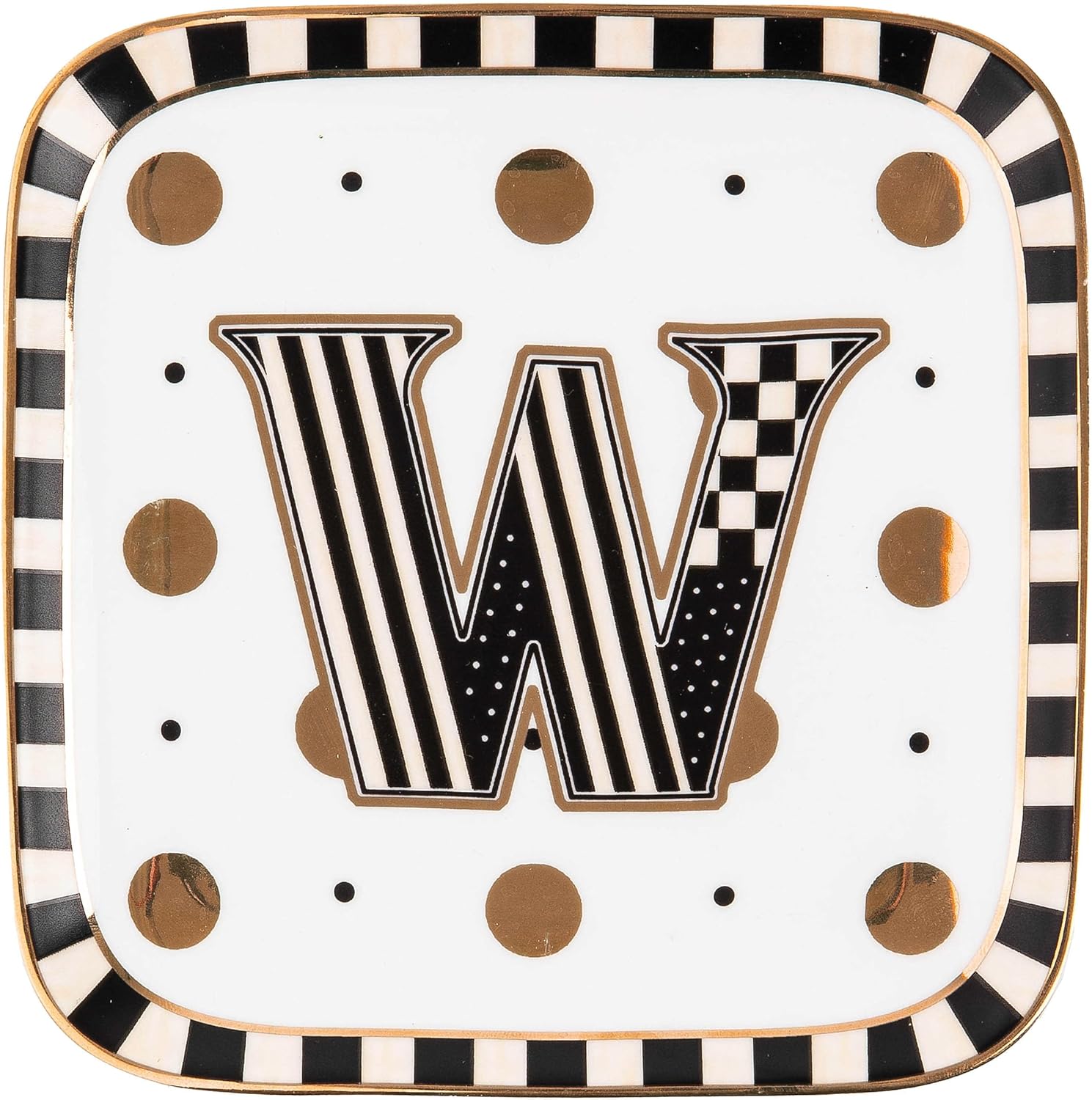 MACKENZIE-CHILDS Monogram Dish, Decorative Ceramic Letter Plate, 5 3/4" Square, W