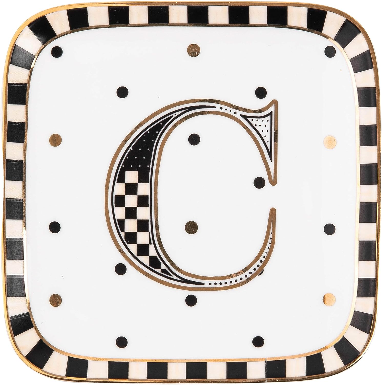 MACKENZIE-CHILDS Monogram Dish, Decorative Ceramic Letter Plate, 5 3/4" Square, C