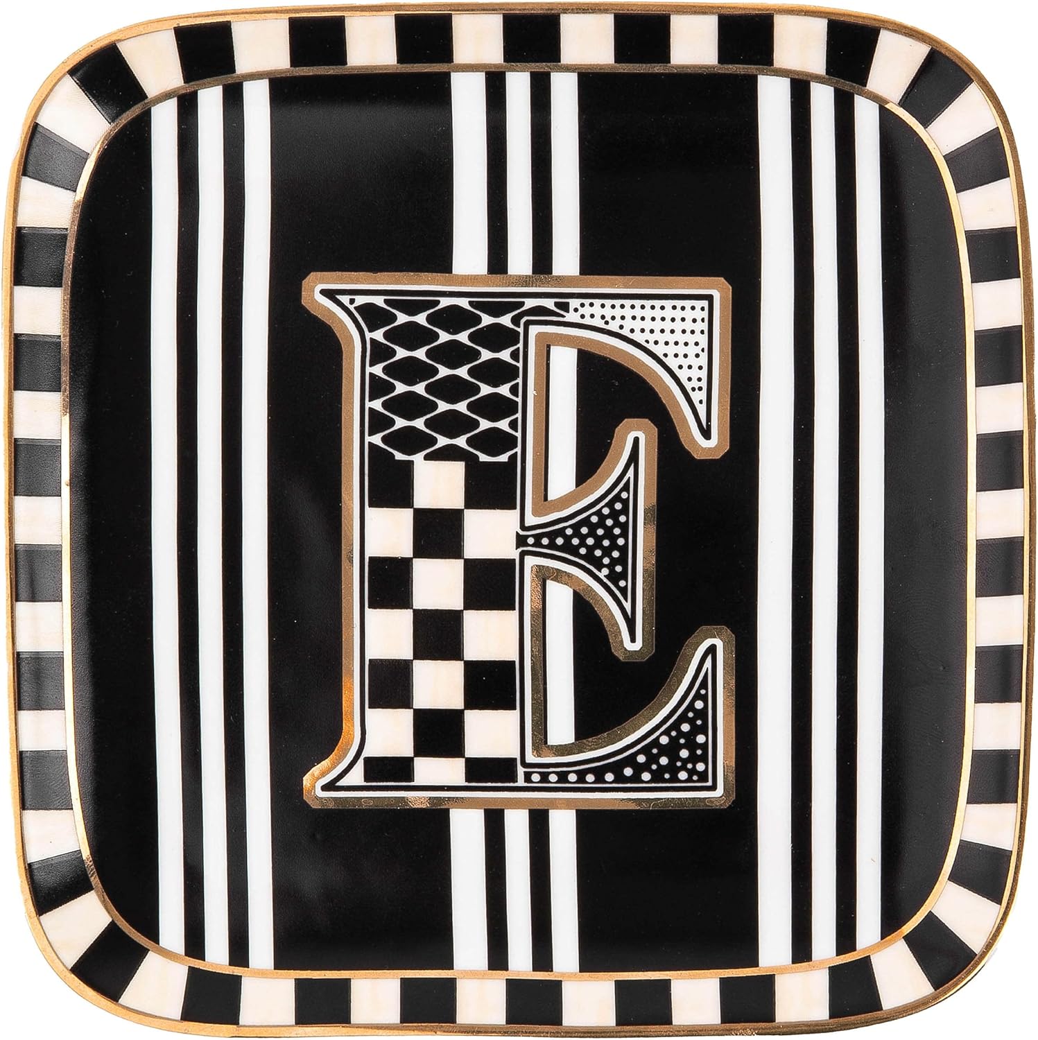 MACKENZIE-CHILDS Monogram Dish, Decorative Ceramic Letter Plate, 5 3/4" Square, E
